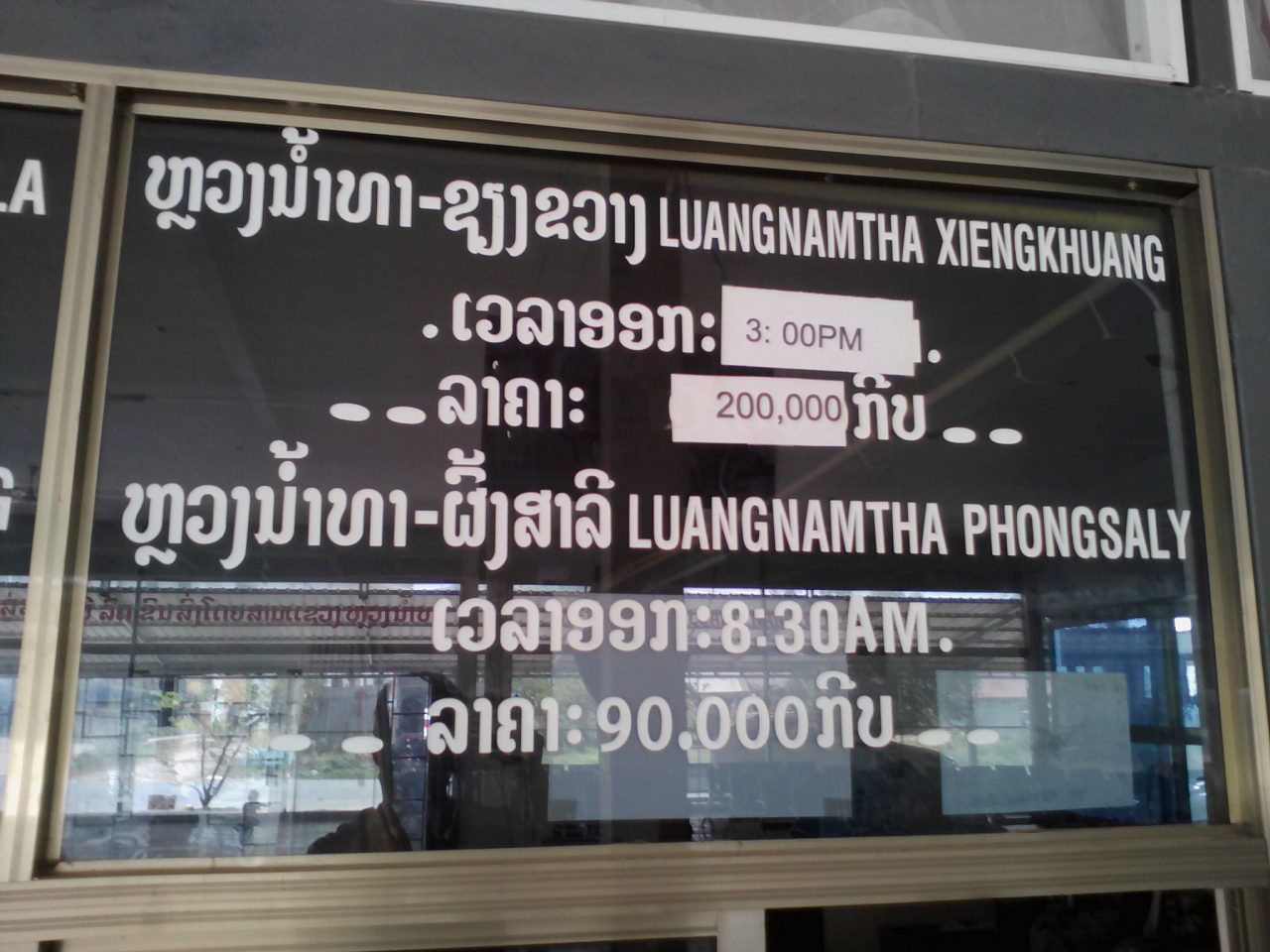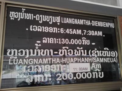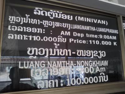 また、ルアンナムターからのバスの行き先、時刻、料金の写真を貼っときます。ご参考にして下さい。- 旅行時期