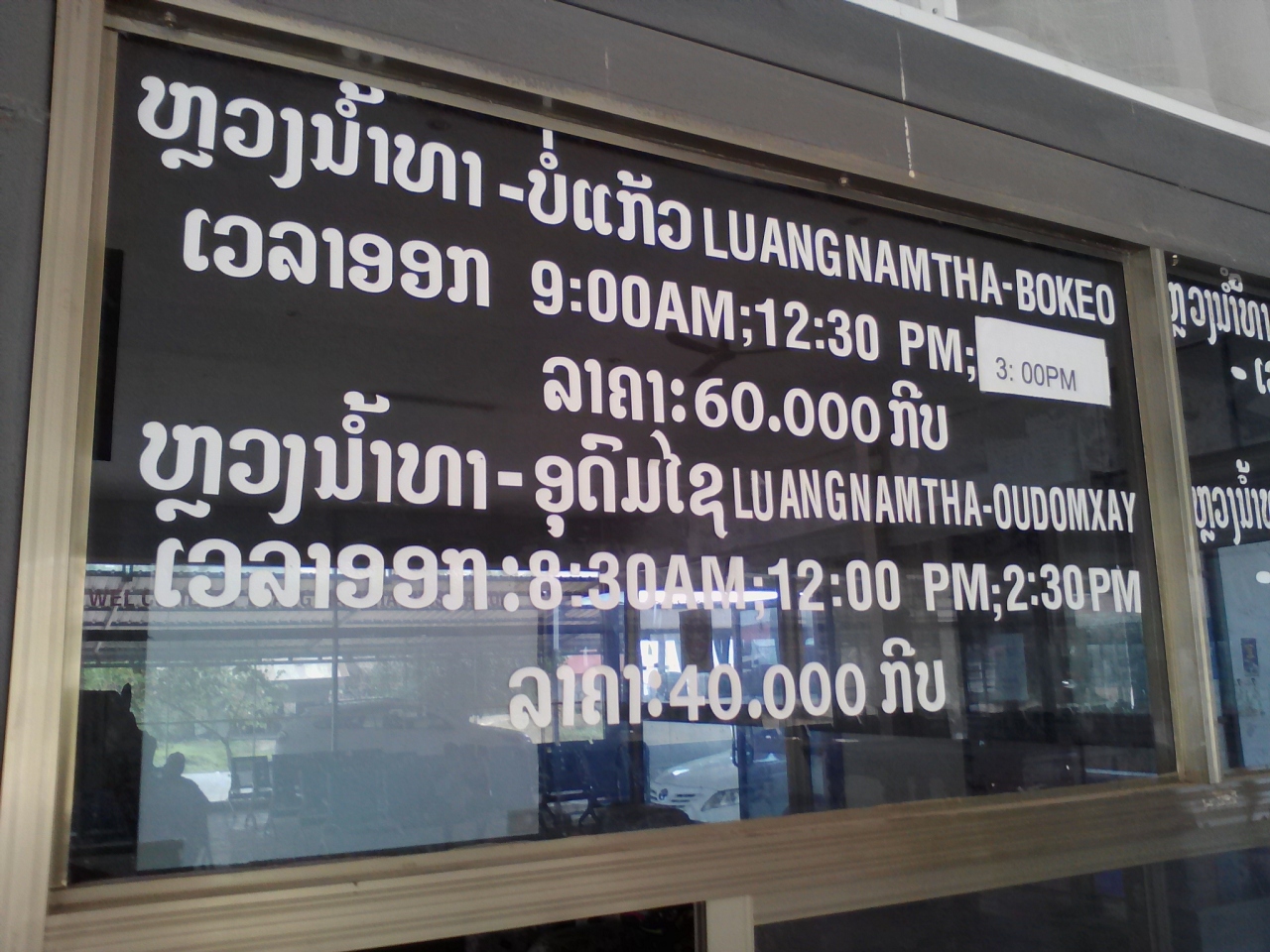 ボーテン(中国国境)?8:00,9:30,11:00,12:30,14:00,15:30 3万kip