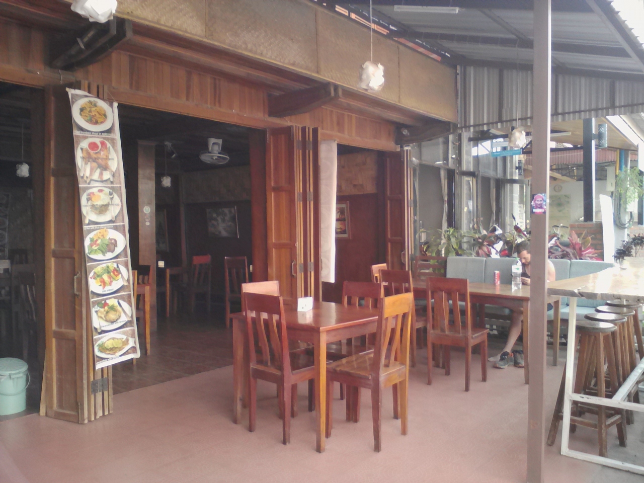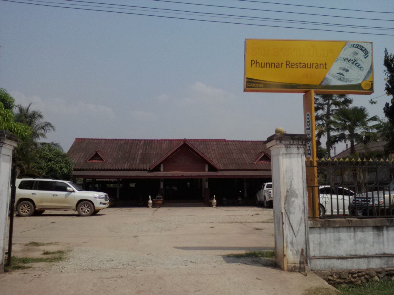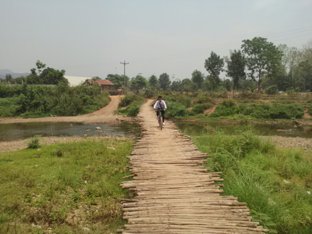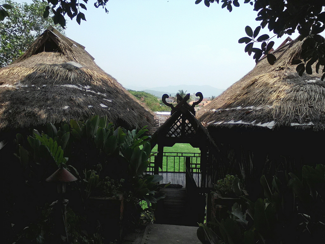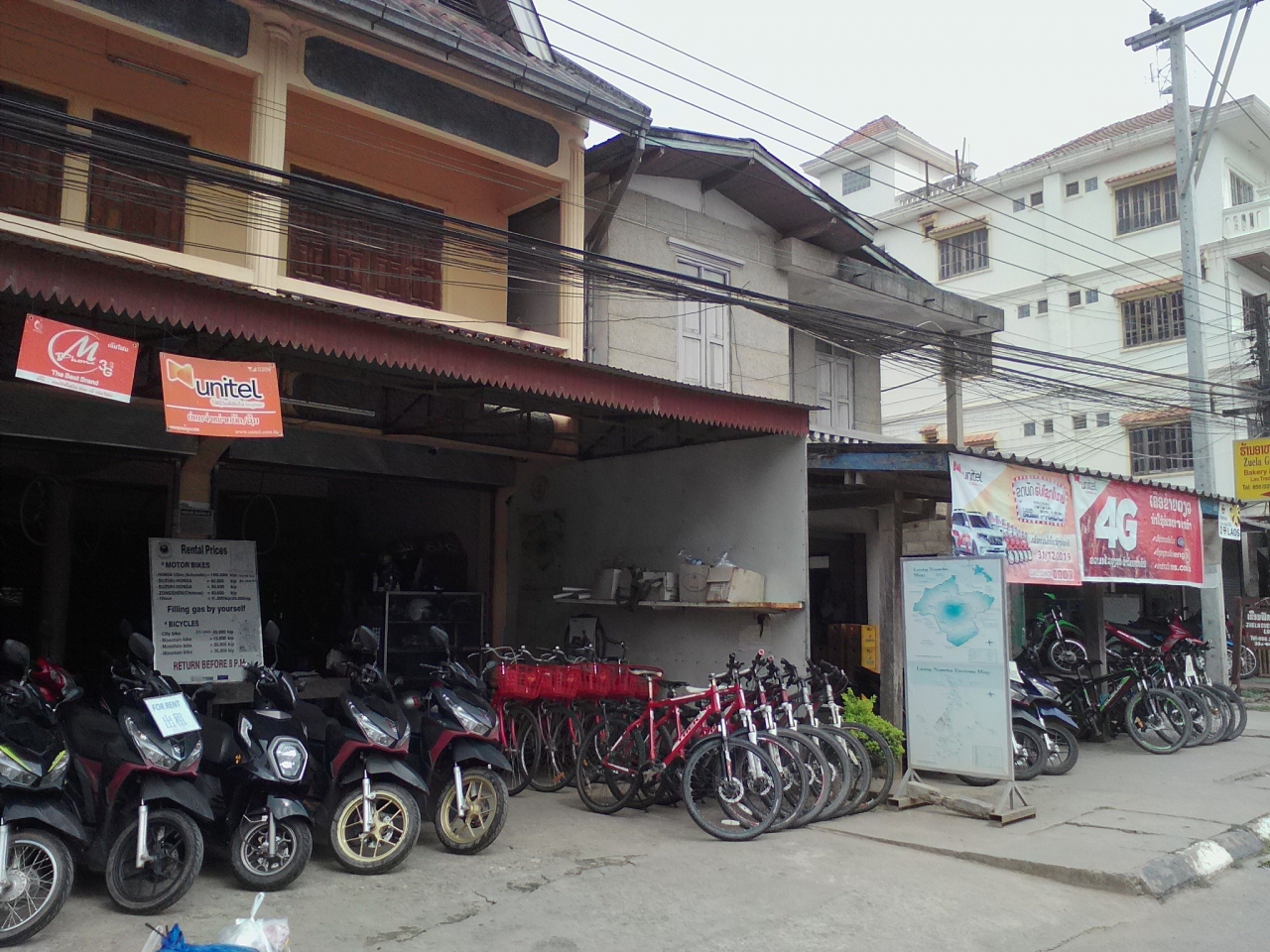 町の中心からやや離れた南国リゾート風バンガローのG.Hです。本来は8万kipだけど1人だから7万でいいと言われ、3泊するんで20万でいい?とお願いしたらOKがでたのでここに決めました。部屋には2ベッド、ファン、テレビ、シャワー(お湯)トイレがあり、バルコニーからの眺めもいいし開放感が味わえます。室内でもWifiOK。一応リゾート感は味わえますがやはり本物のリゾートではないので細部はやや問題あり。過度な期待は禁物です。しかし町中のG.Hに比べればこちらの方が断然落ち着けると思います。ローカル市場が近いのも便利です。