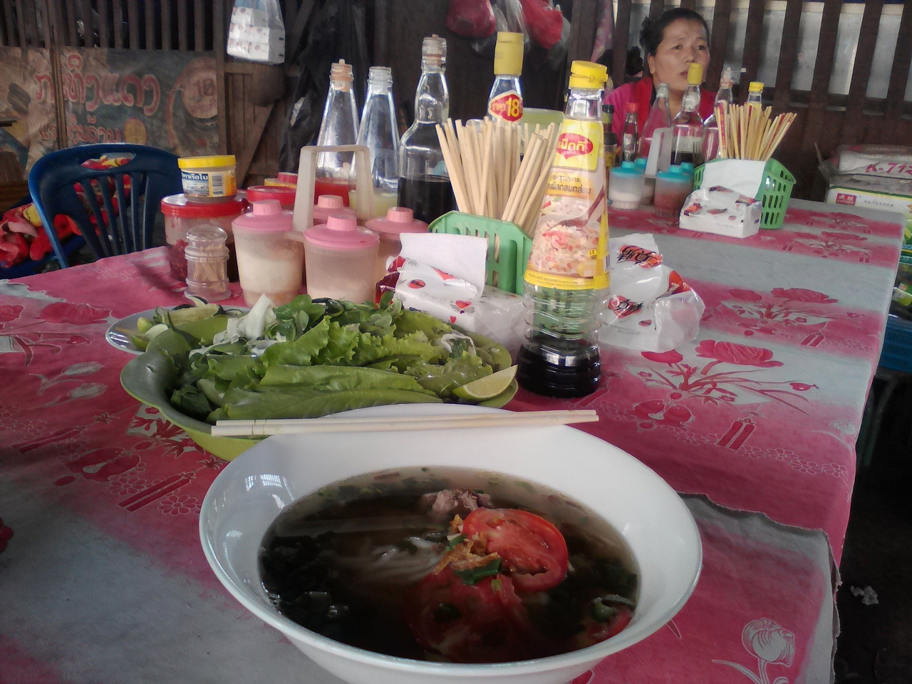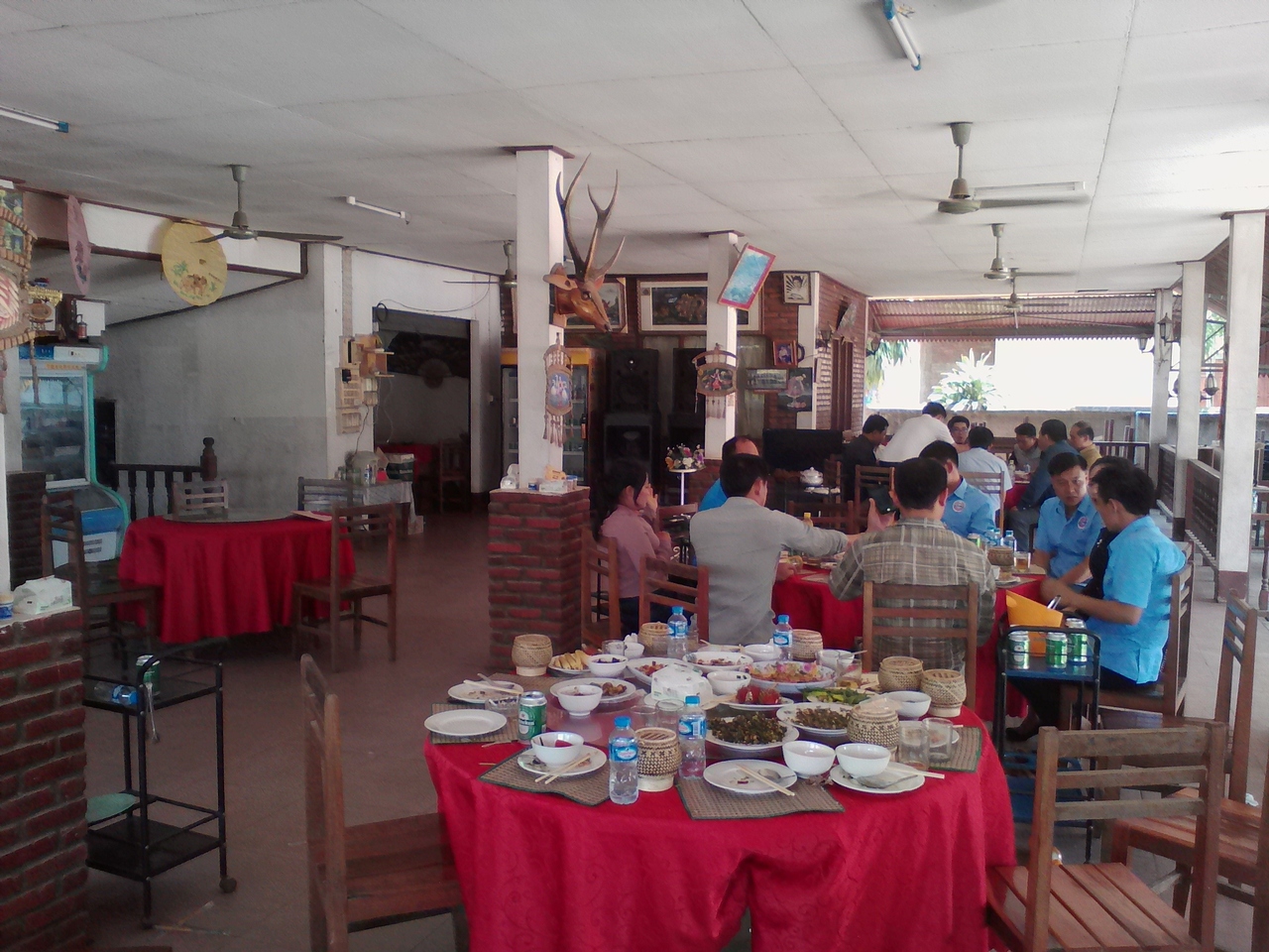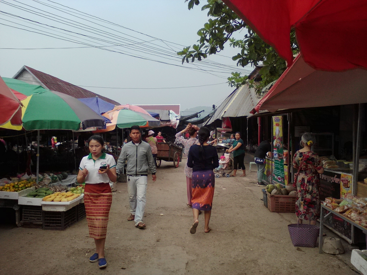 ムアンシンという田舎町の規模にしたらかなり巨大で充実した市場です。特に飲食コーナーがすごい。カオソイやフーを出す麺の店がずらり、そしておかずをチョイスしてご飯に乗っけてもらう定食屋も10軒ほどありどこで食べようか迷ってしまうほど。なので朝飯、昼飯にはこと欠きません。麺も定食もどちらも1万kipで食べられます。お腹いっぱい食べたいなら定食の方をおすすめします。しかし営業は夕方まで。中には18:00ころまでやっているところもありますが売れ残っているおかずのみです。