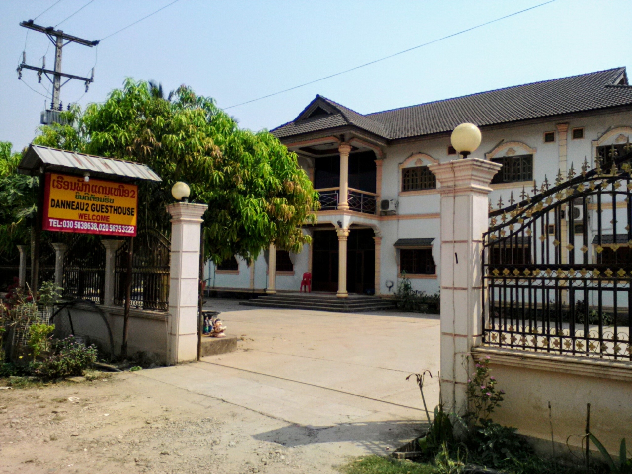 ムアンシンにあるゲストハウス。小さい町なのであまり関係ありませんがやや町外れにあります。昔からあるゲストハウスのようでやや老朽化気味。一番安いファンのダブル(トイレシャワー付き)は6万kip。部屋は日陰になった1階にあり中は涼しいですが、その代わり暗いです。要らないテレビがあります。蚊帳がありました。まぁ悪くはないかなという感じですがWifiがありません。SIMを使わない方にとっては致命的な欠点かなと思います。