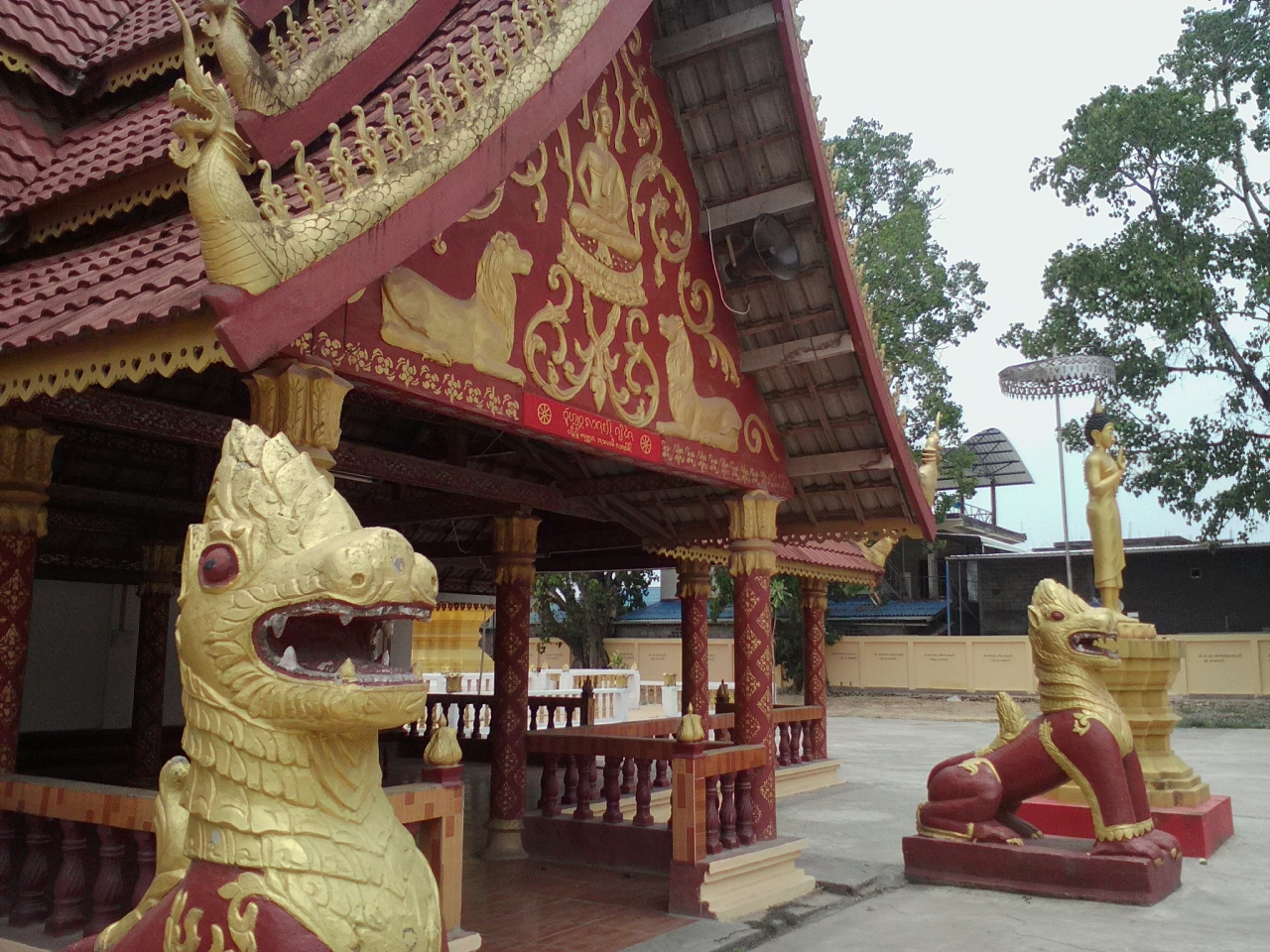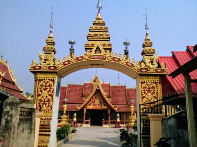 町の中心、旧トライバルミュージアムの裏手にありメインストリート側に入口の門があります。赤と金色の配色が見事な美しいお寺です。昼間はひっそりとしていて人気はなし。本堂の扉も閉まっていて中は見ることかできませんでしたが扉に彫られた装飾はシブくてかっこよかったです。朝行けばもう少し賑やかで本堂内部も見れるかもしれません。- 旅行時期