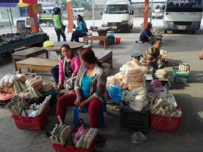 所要2Hでムアンシンの市場前にあるバスターミナルに到着。ムアンシンの町中を通って行くので合図をすれば降りたい場所で降ろしてくれます。