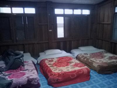 ルアンナムター唯一のドミでしょうか?木造で一室3ベッド。風通しが悪く暑いです。