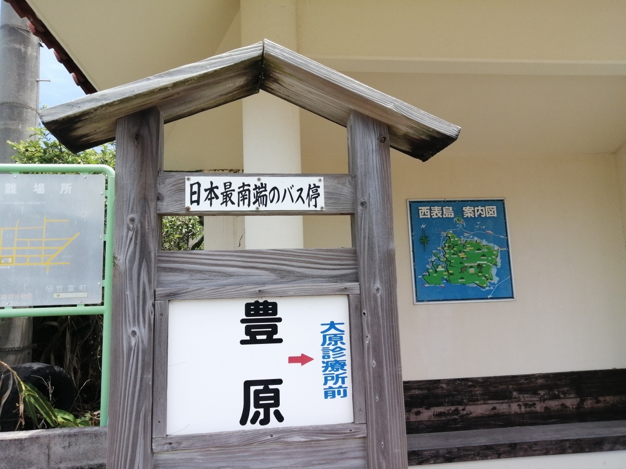 西表島にもちゃんと路線バスは走っています。豊原~大原~上原~白浜間を結ぶ1路線。1日4往復のみと旅行者には使い勝手はいいとは言えませんが、バス好きの方には聖地と言えるかもしれません。それは路線には日本最南端の「豊原」バス停がある路線だと言うこと。特にバス好きではない私も一応、記念にこのバス停は押さえておきました。