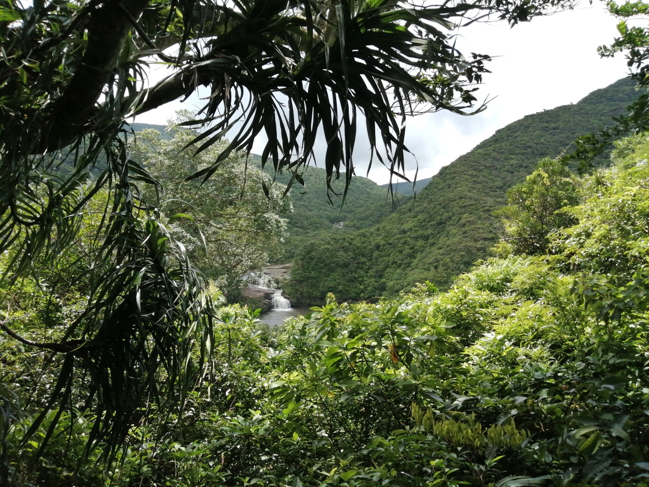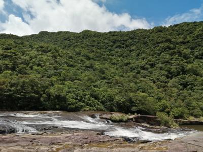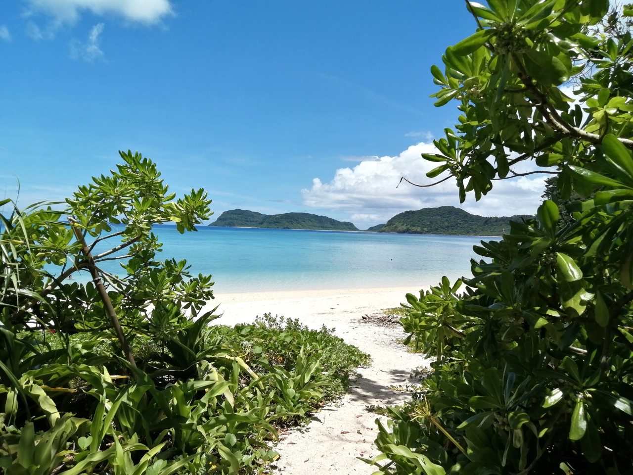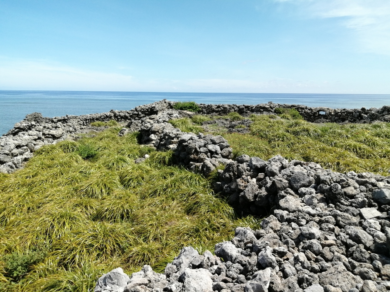 鳩間島には昔からの井戸は3箇所。その中で唯一整備された“観光地”っぽい井戸です。「記念物 下り井戸」と書かれた石柱と由緒板もあります。傾斜の先には洞窟があり、その中に水が湧いています。昔の人々には大切な飲料水だったようですが、なんか怖くて中に入れませんでした。