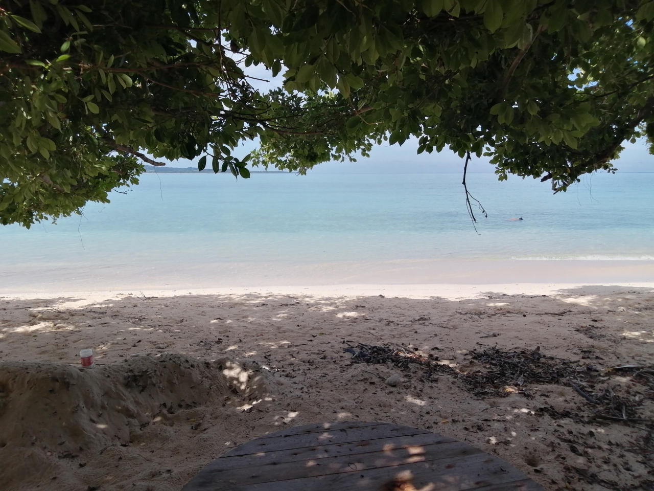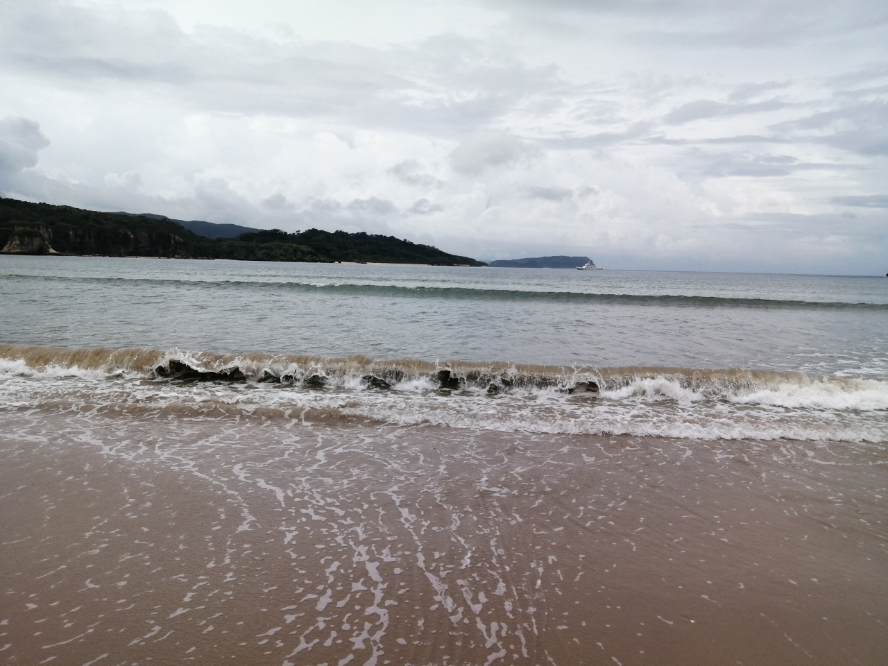 天気が悪かったせいかもしれませんが海のきれいさはあまり感じませんでした。いわゆる“ビーチ”というよりは岩場の海岸でシュノーケリングや水遊びに向いているといった感じ。ホテルやレストラン、キャンプ場なども隣接しており、はっきりいって観光地です。こんな所ではのんびりできません。