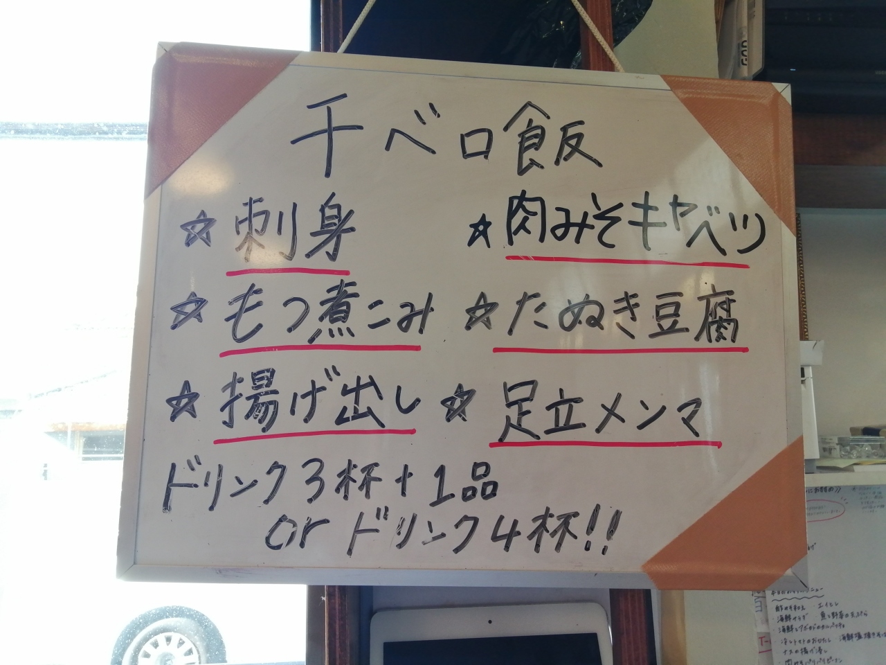 足立屋と言えばやはりセンベロ(酒3杯と料理or酒4杯)。税込み1100円になってしまうのは残念ですが、それでもクオリティー高いです。15:00からオープン。17:00頃から混み始めるので早めに行った方がいいです。- 旅行時期