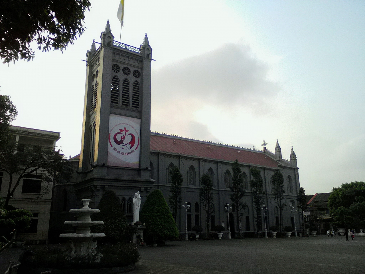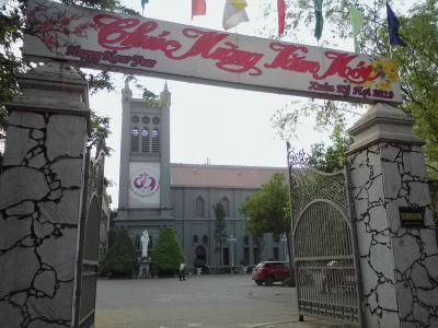 ハイフォンを代表する教会だと思うのですが、なんかパッとしない。そもそも何でこんな“向き”なのか?正面入口から見ると敷地の端っこに横を向いて建っています。見るからに窮屈そう。色もグレーで地味すぎる…。扉が開放されていたので内部も見ることができました。2度目に訪れた時はミサが始まろうとする時間でしたが、その時は入口で警備のおじさんに追い返されました。今まで教会を訪れた時にこのような対応をされたことがなかったのですが…。Tシャツ&ハーフパンツ、ぞうりがダメだったのか、単に不審者だと思われたかのどちらかだったかもしれません。いや両方かな。