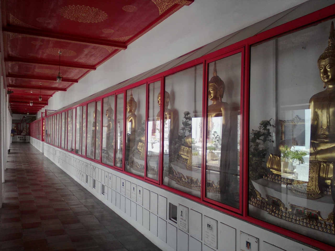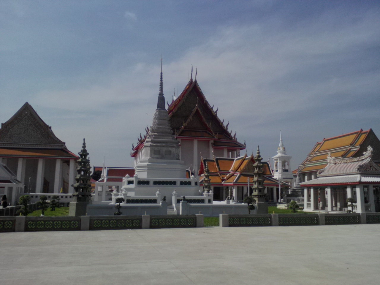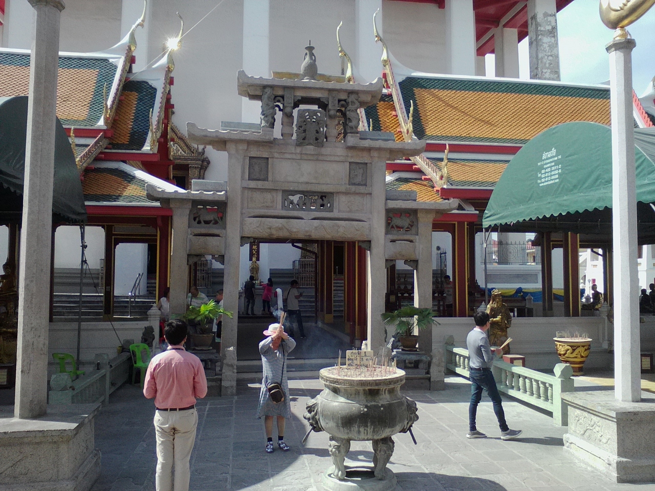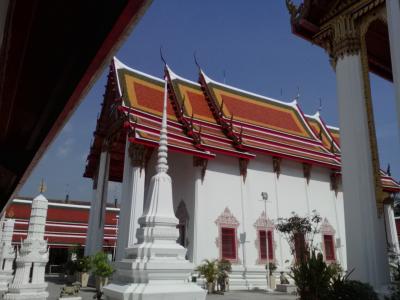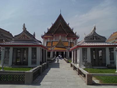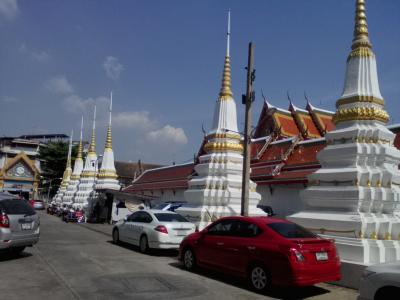 パーククローン市場の端の船着き場「Atsadang」から渡し船で行きました(運賃6B)。都会の寺院らしく整然とした美しさがあります。この寺院はあまり知られてはいませんが、縁起の良いとされる9という数字にちなんだ「9ヶ所参拝」にも選ばれるほど。本堂前には香炉がありどことなく中国寺院風です。この寺院の見どころは何と言ってもタイ最大級の大きさを誇る座仏像。必見です。