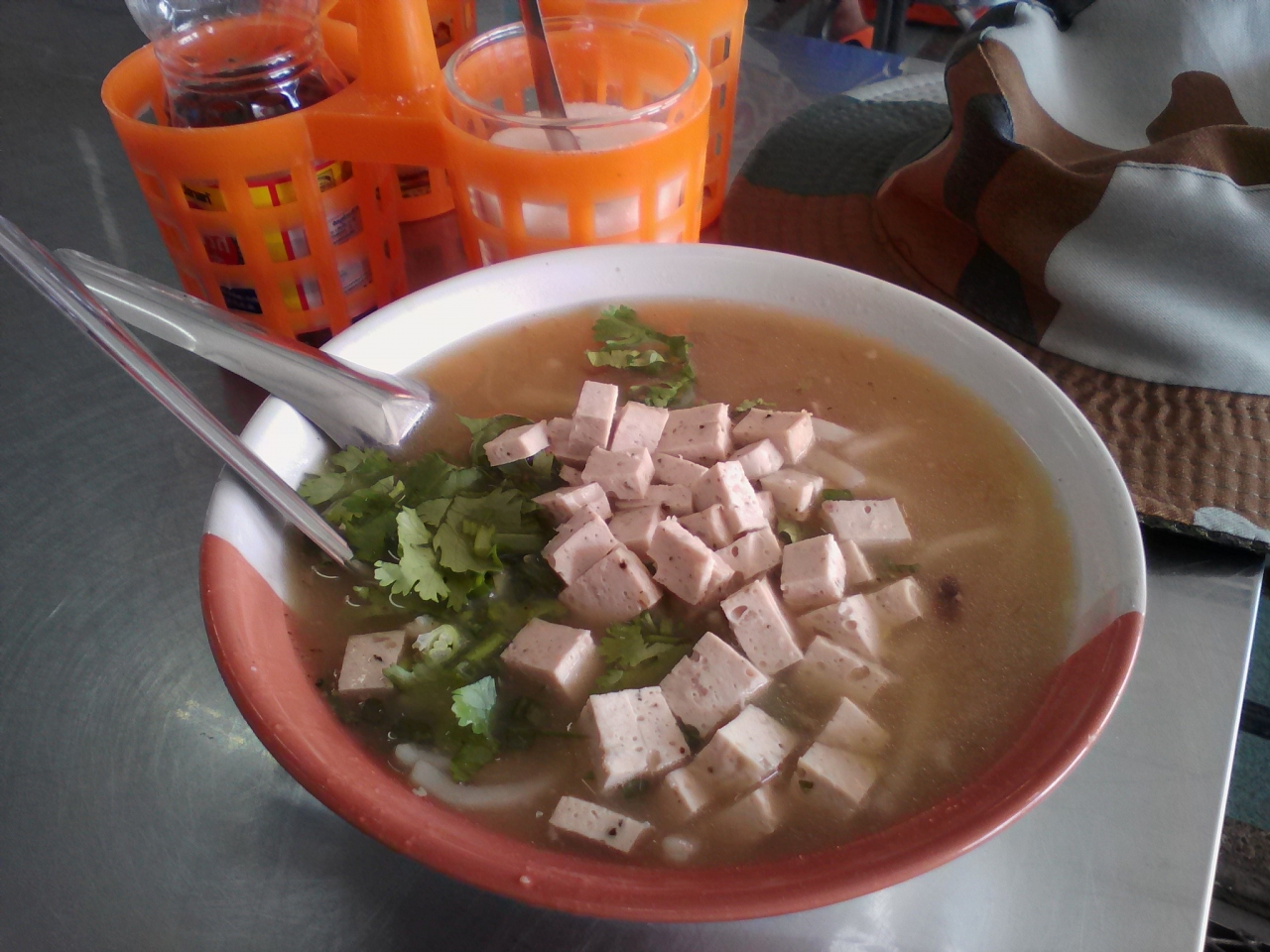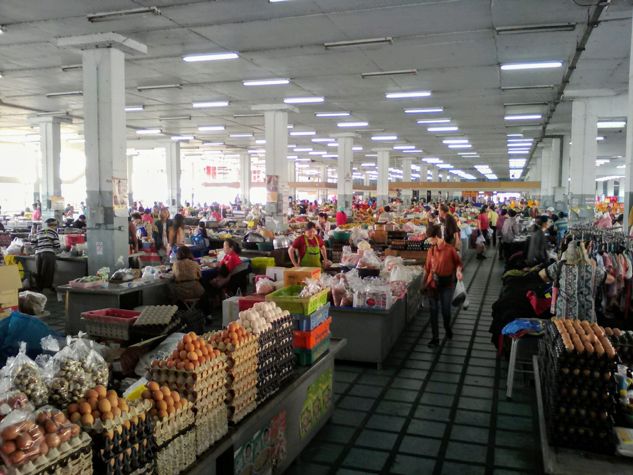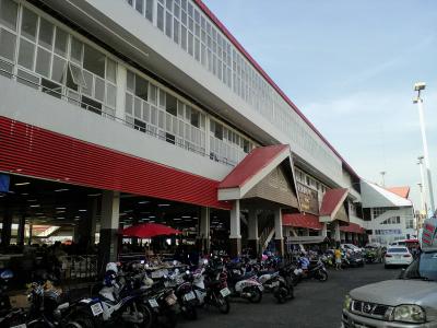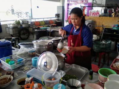 名前のとおり巨大な市場。朝から昼頃までやっています。もちろん飲食コーナーあり。市場めしのクイチャップを食べてみました。時刻は11:30、鍋を覗くと残り少なく終了直前でした。麺はうどんの太さでブチブチ切れた状態。正確にはウボンのクイチャップではなくラオスのカオピアックスタイルでした。小さく刻んだハムいっぱいと大きな豚肉が入って30B。やはり市場はお得です。味はもちろんおいしいです。隣りは1袋20Bのおかず屋台。ラオス風サンドイッチなんかもありました。やはり市場は楽しいです。