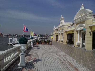 パーククローン市場の裏手にある川に面したおしゃれスポットです。夜に行けばバンコクの夜景を眺めチャオプラヤー川の夜風に当たりながらディナーができると思うのですが昼間はまだ準備前で人影もなく閑散としています。しかしチャオプラヤー川の眺めは抜群。開放感がありとても気持ちのよいスペースです。