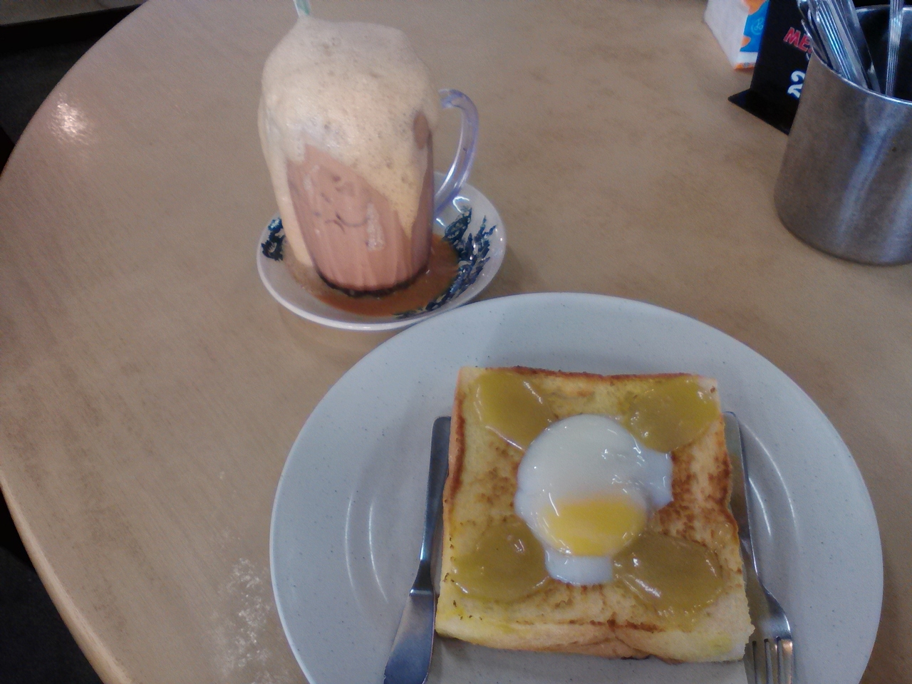 それなりに有名な店のようなので行ってみました。一応この時点ではトリップアドバイザーのコタバルレストラン部門で1位の店です(これほどブラックなランキングもないと思いますが…)。店の看板商品である「ROTI TITAB」なるものをオーダー。この店オリジナルの半熟卵トーストです。バターの塗られたトーストの四隅に甘~い(ローカル)カスタードクリームと真ん中に半熟卵(温泉卵に近い)が乗っかっています。お味は……う~んかなりビミョー。日本人にとっては甘さと卵はマッチしません。醤油をたらすとさらにアメイジングな味になりました…これはやめた方がいいです。はっきり言ってうまくない。これで5RMは高いです。お会計はTEH TARIK BENG(アイスミルクティー)2.5RMと合わせ、消費税?6%がかかり7.95RM。こんな喫茶店で消費税なんか取るなよって感じ。有名になったせいで付加価値が付き値段が料理の質に合っていないように思います。「ROTI TITAB」は見た目は映えますがかなりイマイチなのでおのおつもりで…。