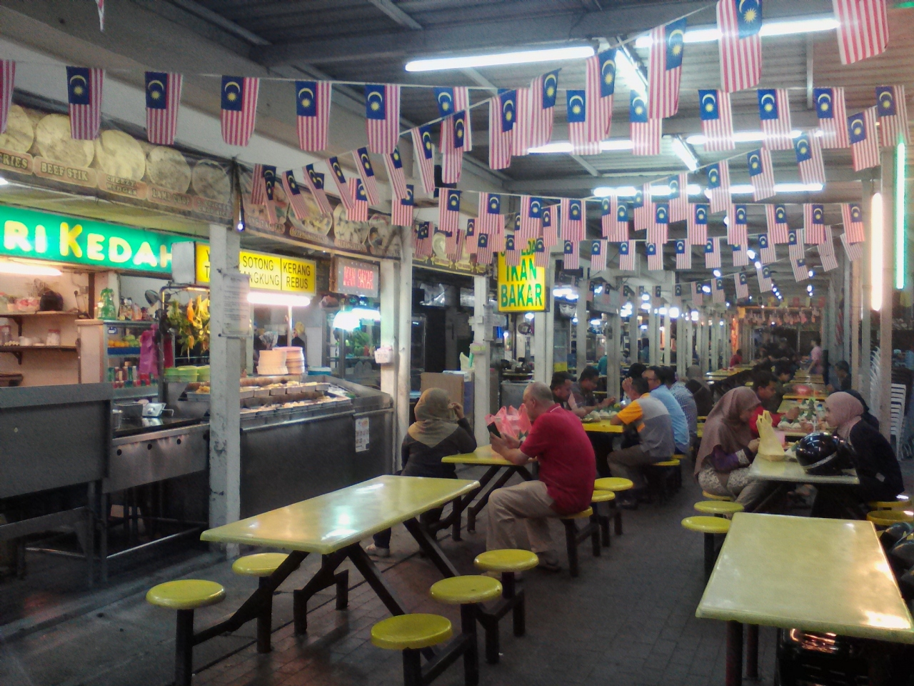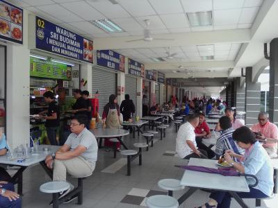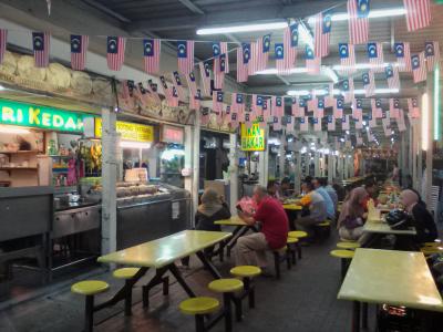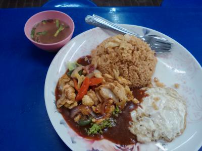 新市街の中心にあるマレー系のフードコート。もちろんいろいろな店が出ていますが、とある店で日頃から気になっていた“ナシゴレンUSA”を食べてみました。普通のナシゴレンとどう違うのか?USAはアメリカのこと?だとしたらきっとハイカラな西洋風?それともジャンキーっぽいのかな?と勝手な想像をして待ってると運ばれてきました。わお!すごーい!写真を見てくれればわかるのですが、チキンライスのようなプレーンなフライドライスとチキンと野菜のデミグラスソース風炒めものと目玉焼きが付いた豪華バージョン。やっぱりUSAは違うなぁとすでに大満足。さてお味は…うまいんだけどちょっと現地人仕様の味付け。サンバルが効きすぎて結構辛めでした。けどまあ、食べられるレベルです。ボリュームもありお腹いっぱい。ミニミニスープ付きで6.5RM。この店の普通のナシゴレンが5.5RMなのでプラス1RMでこれなら断然お得だと思います。