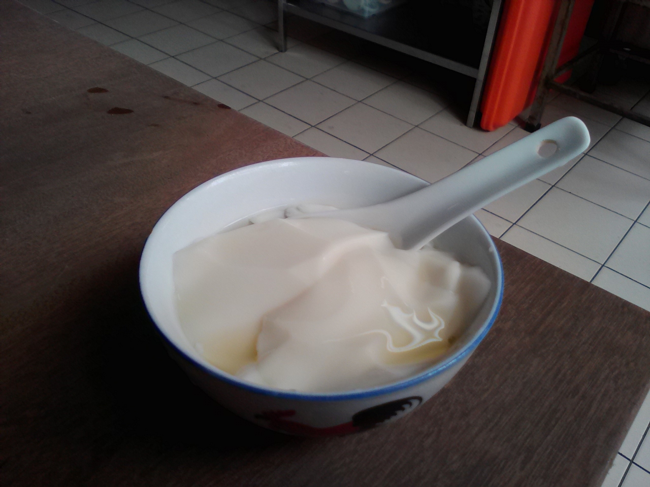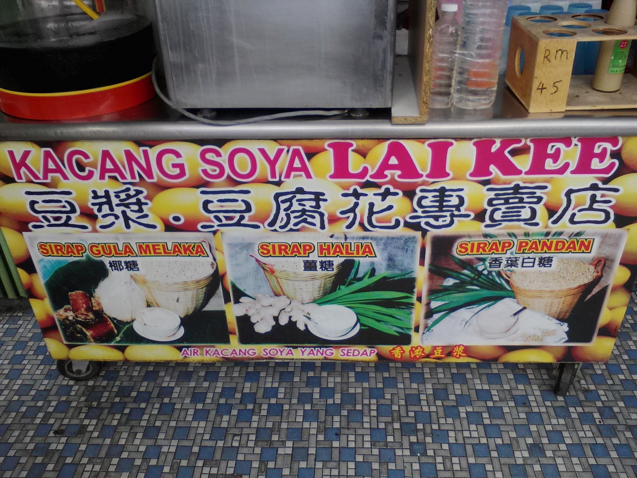 旧市街、お土産屋やカフェが並ぶ路地Concubine Laneにある豆腐花のお店。ガイドブックかウェブサイトで紹介されているのかどうも有名店のようで結構賑わっています。メニューは幾つかありますが一番シンプルな“豆腐花”をオーダー。こんな観光エリアですがお値段は良心的な1.6RMです。蜜はホワイトシュガー(ノーマル)かジンジャーを選べます。ジンジャーにしました。お味は…豆腐なので驚くほどではありませんが、まぁおいしいです。食感を楽しむものかな。甘さが足りない方は卓上にキビ砂糖が置いてあるのでお好みでどうぞ。