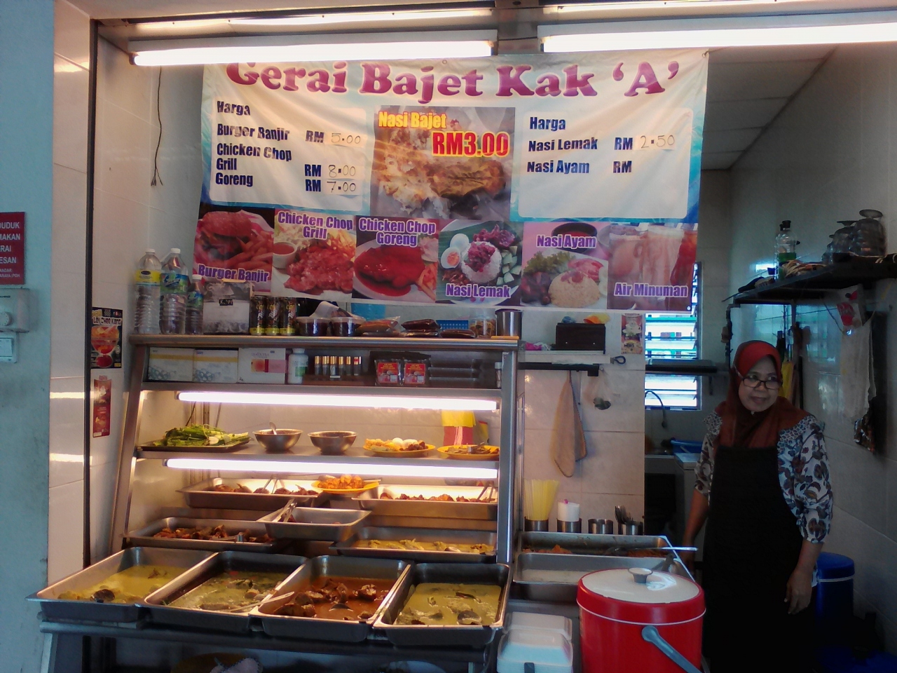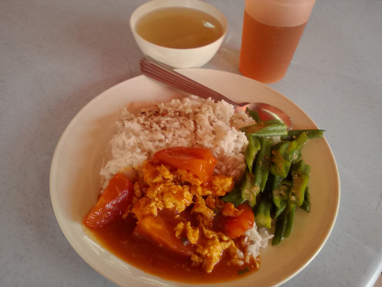 バーチ・メモリアル時計塔の広場にあるマレー系のフードコートです。ランチをいただきました。数ある店の中から目に止まったのが「Nasi Bajet RM3.00」という文字。Bajetは英語のBudgetだと思います。つまりは安めし〜、通常よりも簡素版にしてるということでしょう。で、早速オーダーしてみた。写真ではチキンでしたが魚でもOKでした。味は普通においしいですがやはりこれではお腹いっぱいにはならない。値段通りの代物でした。