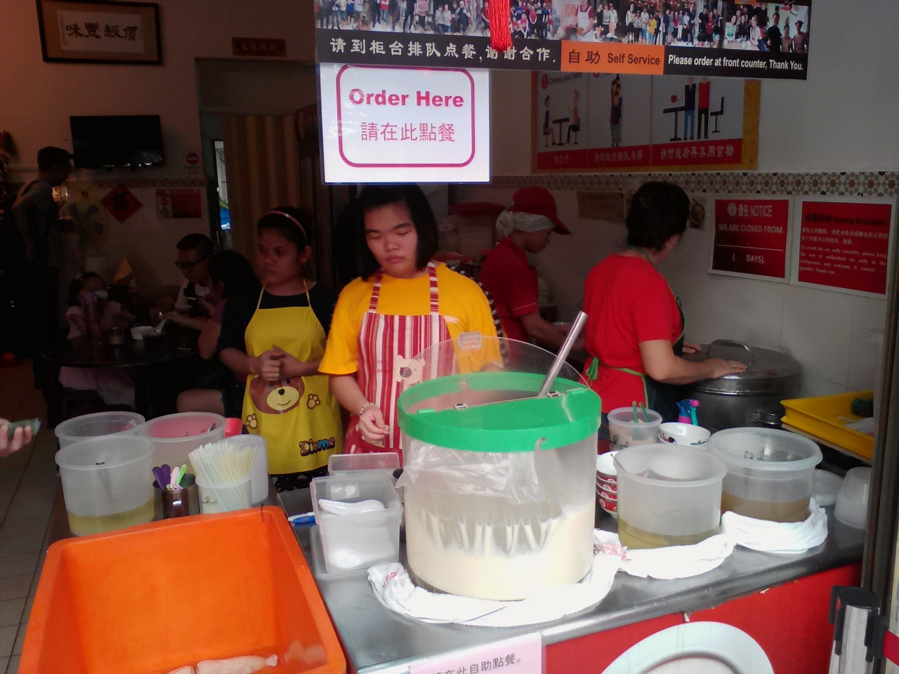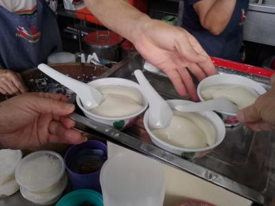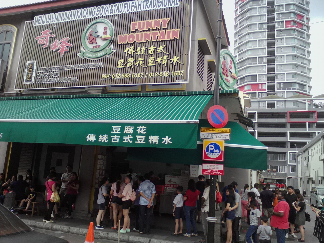 日曜の午後に行ったらびっくり、観光客でごった返していてかなりの列ができていました。なぜ、こんなに流行っているのかわかりません。おそらく各メディアやクチコミのせいだと思いますが。豆乳花は確かにおいしいですが他の店とそれほどの違いはありません。逆に蜜の種類を選べなかったり路上で食べなければならないなどサービスは悪いです。なのにお値段椀1杯3RM(値上げがひどい)。イポーでの相場は1.6RM。実に約2倍。けど、そういう店では観光客は食べない。味は二の次、とにかく有名店でこの店に行ったという事実がほしいだけなのでしょう。それで店側も勘違いし努力を怠る。楽して儲けたい、値上げしたって客は来るだろうという姿勢が気に入らないのです。昔はこんなんではなかったと思います。儲け主義に走らず初心に戻って、お客に喜んでいただくという気持ちでやってほしいと思います。