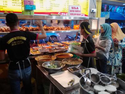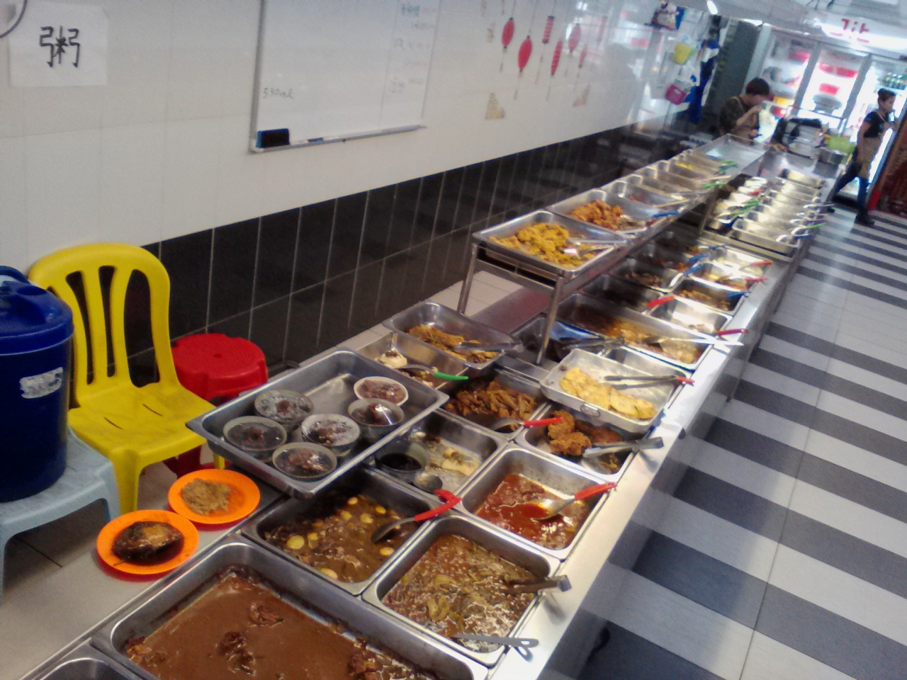 新市街、「Mari Hostel」の1階部分にあるお手軽中華食堂です。バットで並べられたおかずをチョイスし自分でご飯に盛るスタイル。いわゆるぶっかけ飯です。おかずの種類が多く値段も安い!うまい!おまけにガラスープ無料、中国茶(アイス&ホット)も無料というサービスのよさ。地元の人がよくやって来る理由がわかります。昼の方がおかずの種類が多いです。もちろんおかずの種類と量によって値段は変わりますが何回も通った私の例で言うと野菜系2品で3.5RM、肉系野菜系1品ずつで4〜5RMでした。Mari Hostelに泊まる方ならメリット大です。宿からわずか3m、そして雨降ってても濡れずに行けますから…。