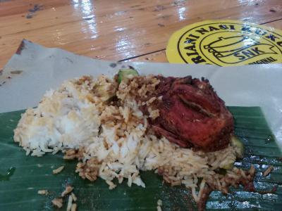 コタバルに来たら必ず一度は訪れる店。チキンのボリューム、味、値段と三拍子そろった人気店です。その証拠にこの店のちょっと東側にスリアナ(Suriana)ナシククスという名の店があり(おそらくパクり?詳細は不明)、こちらの店は閑古鳥が鳴いています。やはりスリアニの方がおいしいということなのでしょう。値段も前回(2年前)と同じ5.5RMで据え置き。味ももちろん変わらずおいしいです。ブラボー!絶対おすすめです。テントだった店内もちゃんと屋根が付きました。