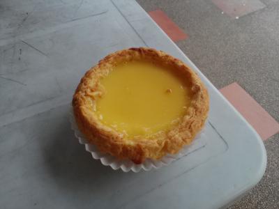 店がなかなか見つからず探してしまいました。それもそのはず、「YIK SUN HAKKA MEE」という店の間口を借り、ガラスケース1つで営業していました。わかりにくい!訪れたのは昼食後の13:00頃でしたが、いくつか種類があるなかの“オリジナル”(2RM)は残り1個のみでした。人気があり売り切れ間近ということなのでしょうか。早速購入し、そのまま店の前でいただきました。お味は…う〜ん、上品なお味。甘さ控えめで大人な感じ、手作りカスタードプリンを食べているようです。まあ、おいしいと思います。しかし甘い物好きのマレー人にはこれは受けるんでしょうか。