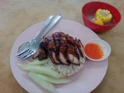マレーシアにはよくある喫茶店兼食堂です。白珈琲発祥の店と言われる「南香」の30mほどの斜向かいにあります。入っている店は3つ、チキンライス、麺、インド系。の中からチキンライスの店で「叉焼飯(Char Siew Rice)」を食べました。チャーシューライス、焼豚ご飯です。照りっ照りのチャーシューで見るからおいしそう。さて、お味は…やや甘めのタレですが抜群にうまいです。チャーシューの量も多くチリソースをつけるとうまさ倍増。鶏ガラスープにはコーンが入っていてちょっぴりお得感も。これで4.5RM。大満足の一品でした。営業時間は14:30頃までですがチャーシューライスは早めに売り切れるので昼前11:00頃までに行ったほうがいいと思います。