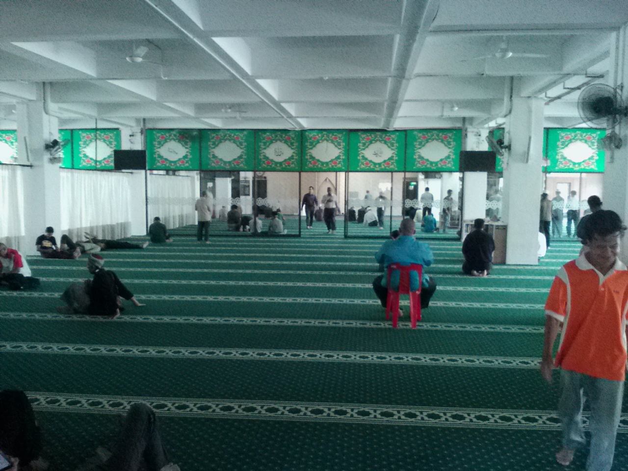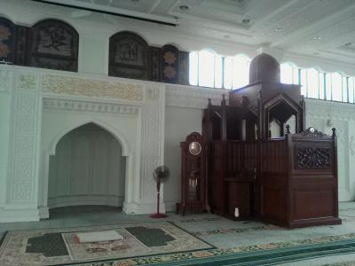 正面入口は南側のJalan Sultan Iskandarにありますが裏側に当たる市民ホール側からも入れます。と言っても勝手に内部に入るのははばかられたので、とある方に尋ねると広報的な方を呼んでもらえて、その方に内部を案内していただきました。礼拝室はもちろん、普通では絶対に入れないであろう蔵書室や会議室まで見学できました。ミナレットも登らせてもらえそうだったのですが運悪く階段への扉は鍵がかけられており、さすがにわざわざ鍵を取りに行くことはしてくれませんでした。残念。ですが貴重な体験ができました。興味がある方はお願いすればおそらく見学させてもらえると思います。