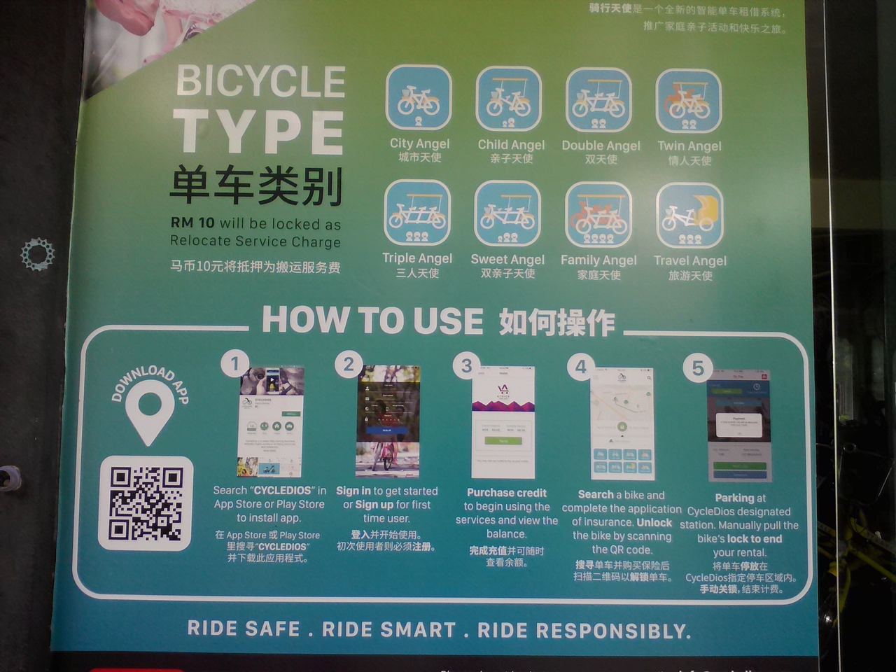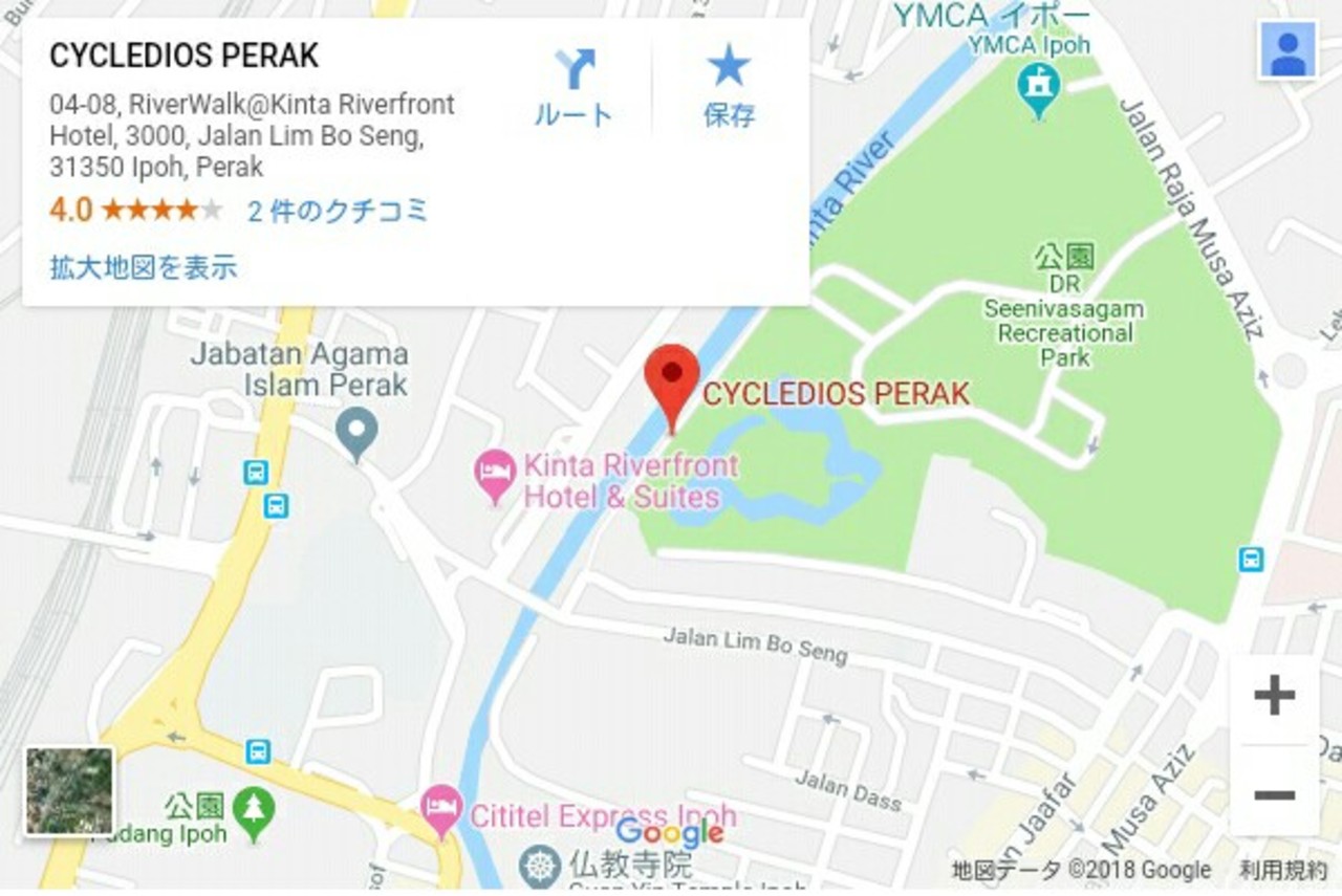 イポーには「CycleDios」と呼ばれるレンタル自転車サービスがあります。路上に派手な自転車が並べられており、この“ステーション”が町中に幾つかあります。専用アプリをダウンロードし、クレジットカードなどで支払いをするシステムです。だだ、アプリなんかダウンロードしたくないとか、システムを把握するのが大変、クレジットカードも使いたくない、デポジット払うのもなんか気になるなどはっきり言って面倒くさいです。しかしこのCycleDiosの本部(基地)へ行けば事務所のPCで処理をしてくれ、支払いも現金でOK。何よりスタッフが常駐しているのでわからないことは全て聞けます(英語ですが)。気になる方はチェックしてみて下さい。本部の場所は写真を参照して下さい。