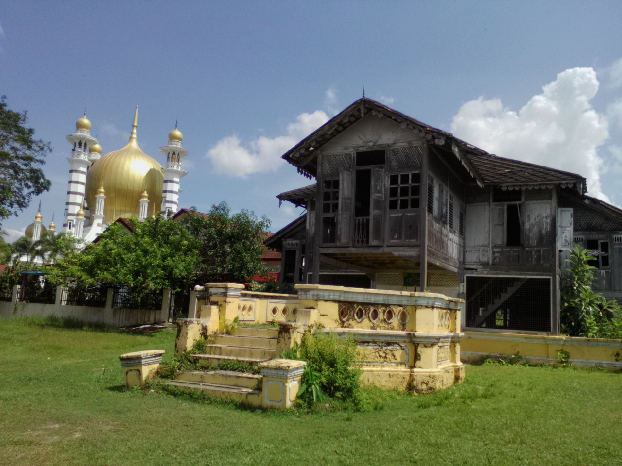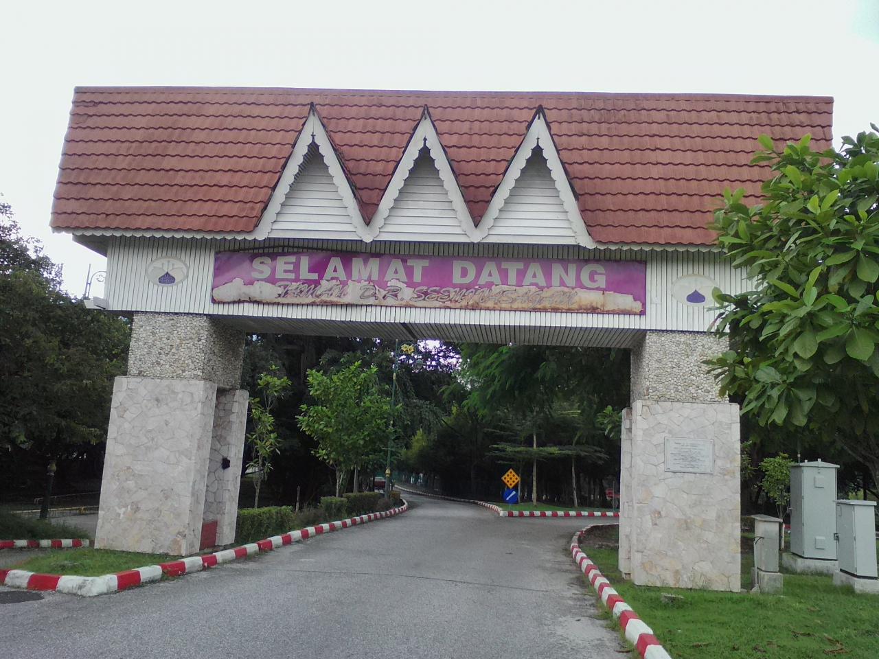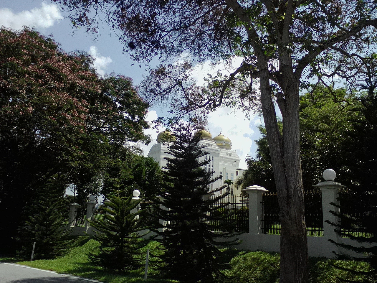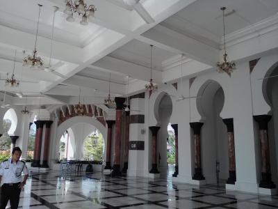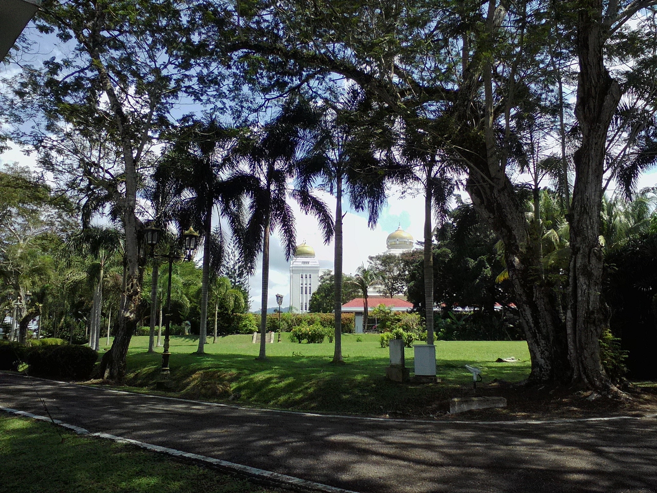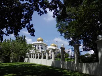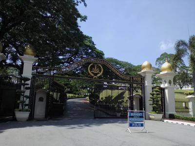 現スルタンの公邸です。ダメとはわかっていても守衛所で「中を見たいんですが…」と尋ねたら笑顔で丁重に追い返されました。ははは…。とりあえず公邸の周りを一周回ってみましたが木々が邪魔をしてなかなか全貌が覗けません。まさに鉄壁の守り。残念ながらその分の労力は報われませんので訪れる方はそのおつもりで…。
