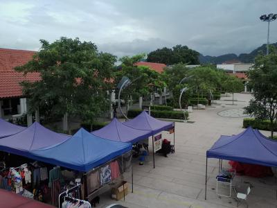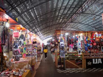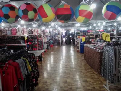 本来は屋根付きの多目的スペースなのでしょうが現在は露店の集まるマーケットとして使用されています。その証拠に端には舞台があります。衣類中心で日用品や生活雑貨などが売られていますが、ほとんど客がいない。店の人も超ヒマそうでした。