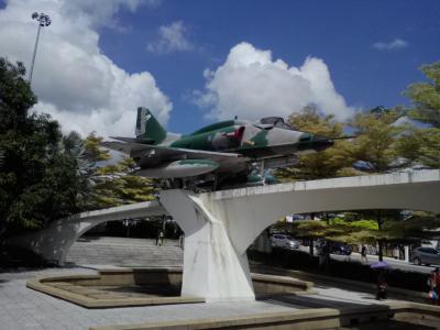 金色のねぎ坊主に白い壁。クアラカンサーにあるウブディア・モスクとスルタン公邸であるイスタナ・イスカンダリアと同じカラーリングです。小ぶりでかわいらしい時計塔ですが個人的な見どころは時計塔…ではなく、その脇に展示保存されている戦闘機です。アメリカ、ダグラス社製のAー4スカイホーク。ペラ州のスルタンに贈られたものらしいのですが、説明書きが見当たらなかったので詳細は不明です。ぜひついでにひと目どうぞ。
