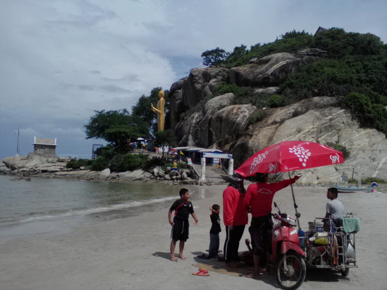 ホアヒン市街から南に8kmほどにあるビーチ。カオタキアップの2kmほど南です。このビーチはホアヒン駅から2駅目の「Suan Son Pradipat」駅からわずか200mほど。なのでホアヒン駅11:47発の255番の普通列車で行きました。だだしこの列車はバンコクのトンブリーからやって来るので遅れることがしばしばです。運賃はたったの2B、所要10分ほどです。他の行き方としてはカオタキアップ入口まで乗り合いソンテウを使い徒歩またはトゥクトゥク、バイタクでしょうか。私も帰りはカオタキアップまで歩きソンテウを使いました。