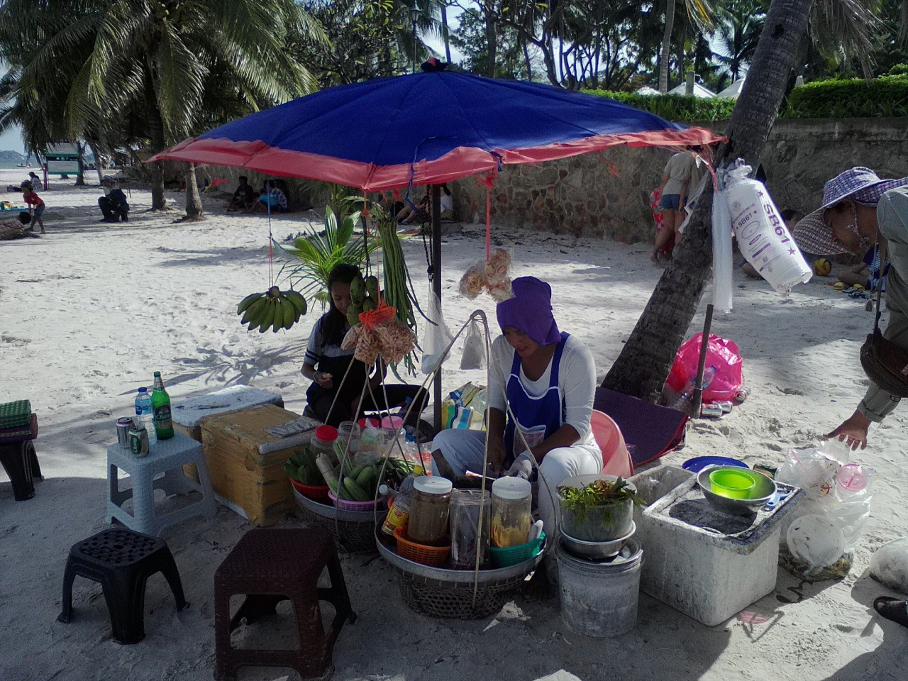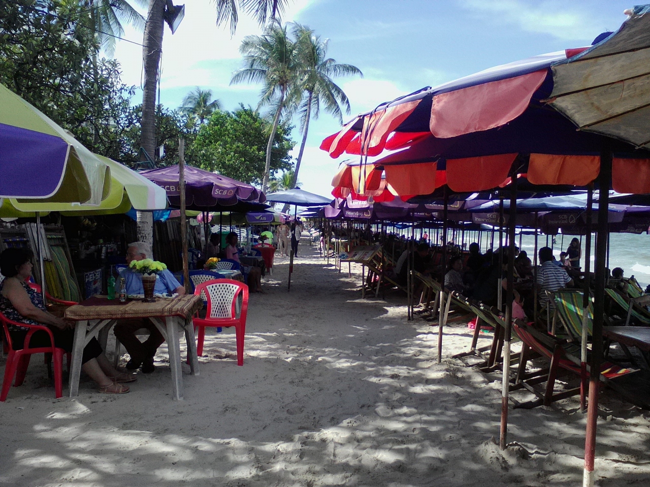 さてビーチですが完全ローカル、ほぼタイ人で外国人観光客はいません。この日は日曜だったためか大勢の人がチェアに座り食事をしていました。フードコートのようなレストランがありテイクアクトできます。シーフード系の物でも50Bほどのローカルプライス。ビールはチャンが70B、リオが80B。食べ物、飲み物を自前で用意すればチェア代20B(1人)で済み、ゴザを持ってくればチェア代もいりません。地元の人なら全部車に積んで来れますから。タイ人が休日にピクニックに来るようなビーチです。- 旅行時期