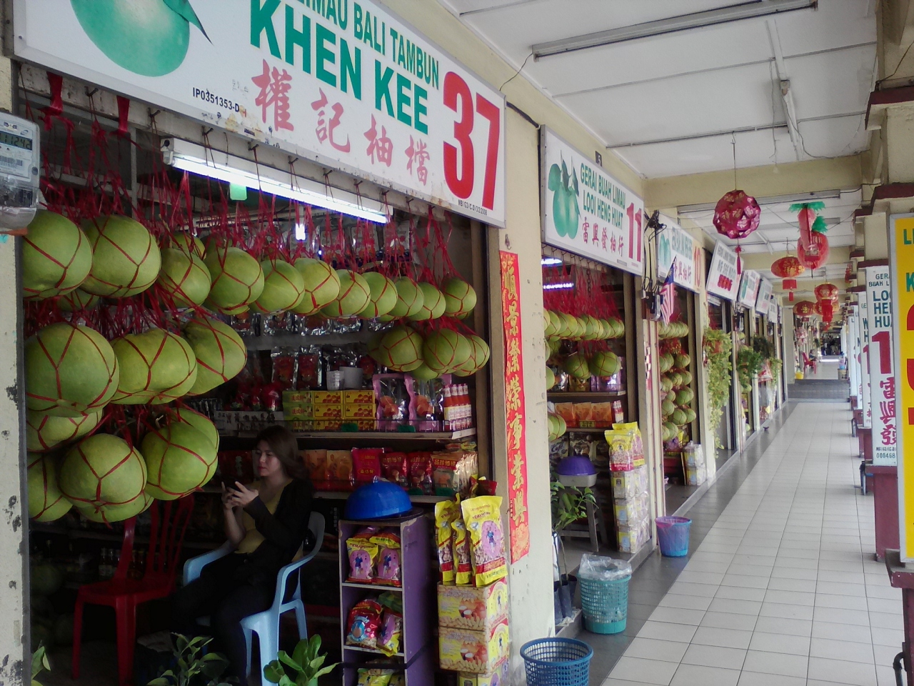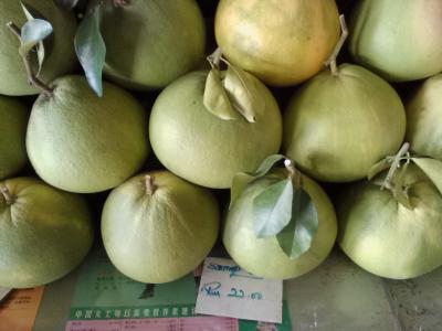サン ポ トン寺院近くの幹線道路沿いにポメロの販売所が並んでいます。この店はその中の一つ。ほかの店と比べて特に特徴があるわけではありません。強いて言えば店の番号が中国系の方たちにとって縁起のよい8並びということでしょうか。値段はどの店も似たり寄ったりですが重さ売りではなく大きさによって値段が変わるので他の店と比べるのは難しそうです。町中の土産物屋などでも売られていますがそこよりは安く買えると思います。ちなみに新市街の青果市場では売られていませんでした。