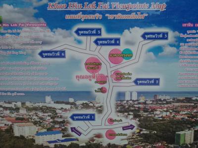 ホアヒン駅の裏手(西側)の山の上にあるビューポイント。もちろん車やバイクでも行けますが歩いて行ってみました。駅前から山を北回りで半周して頂上へ。約3km、45分の行程です。結構急な上りもあり結構疲れます。ビューポイントは全6ヶ所との案内看板がありますがちゃんと整備されているのはNo.4とNo.5。ちゃんとデッキのある展望台になっていてホアヒンの町並みとその向こうに広がる海の眺めが素晴らしいです。ちょっとした山道を通らねばなりませんが5と6からの眺めが最高です。個人的にはホアヒンNo.1スポットです。