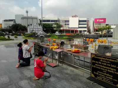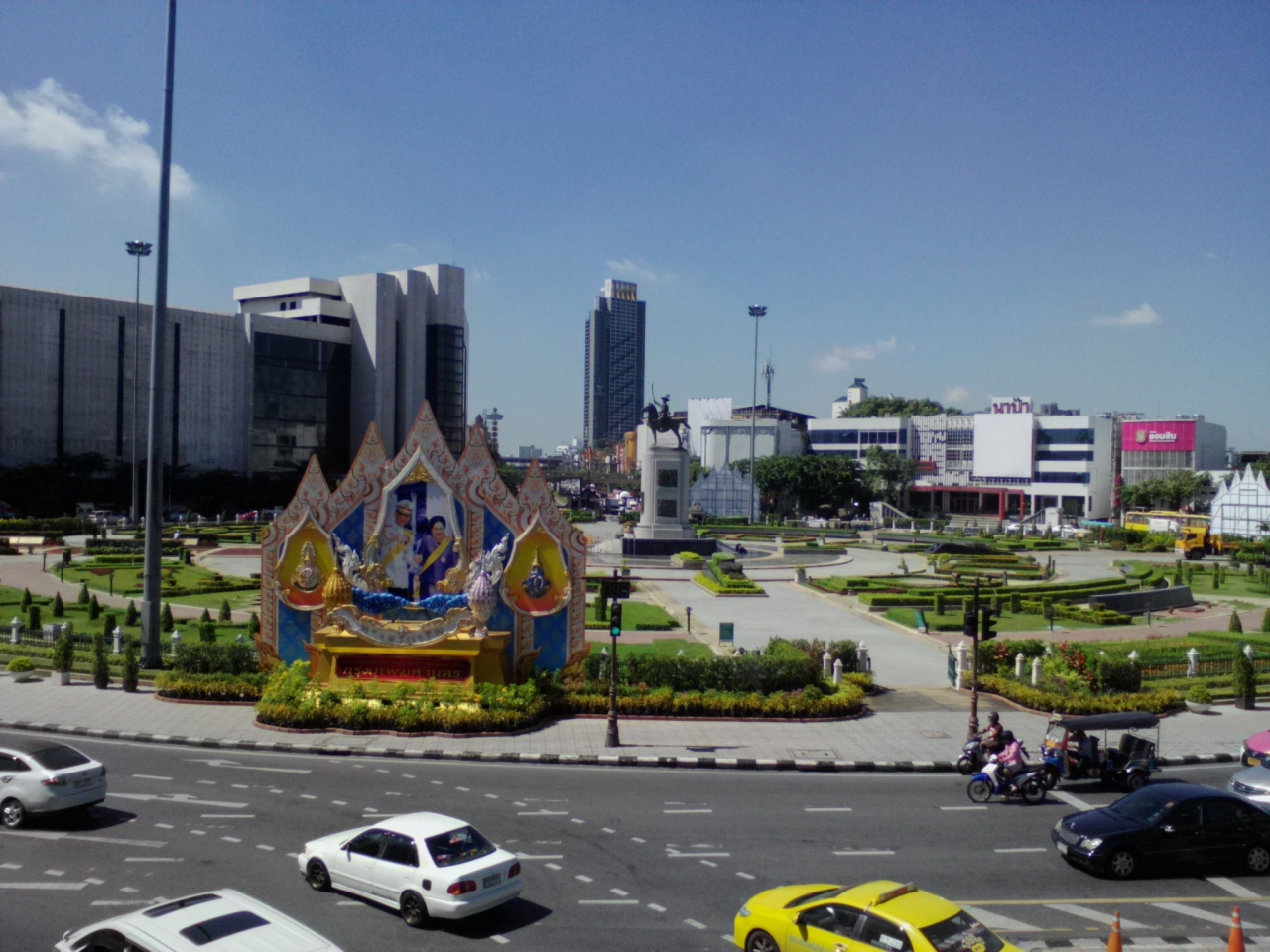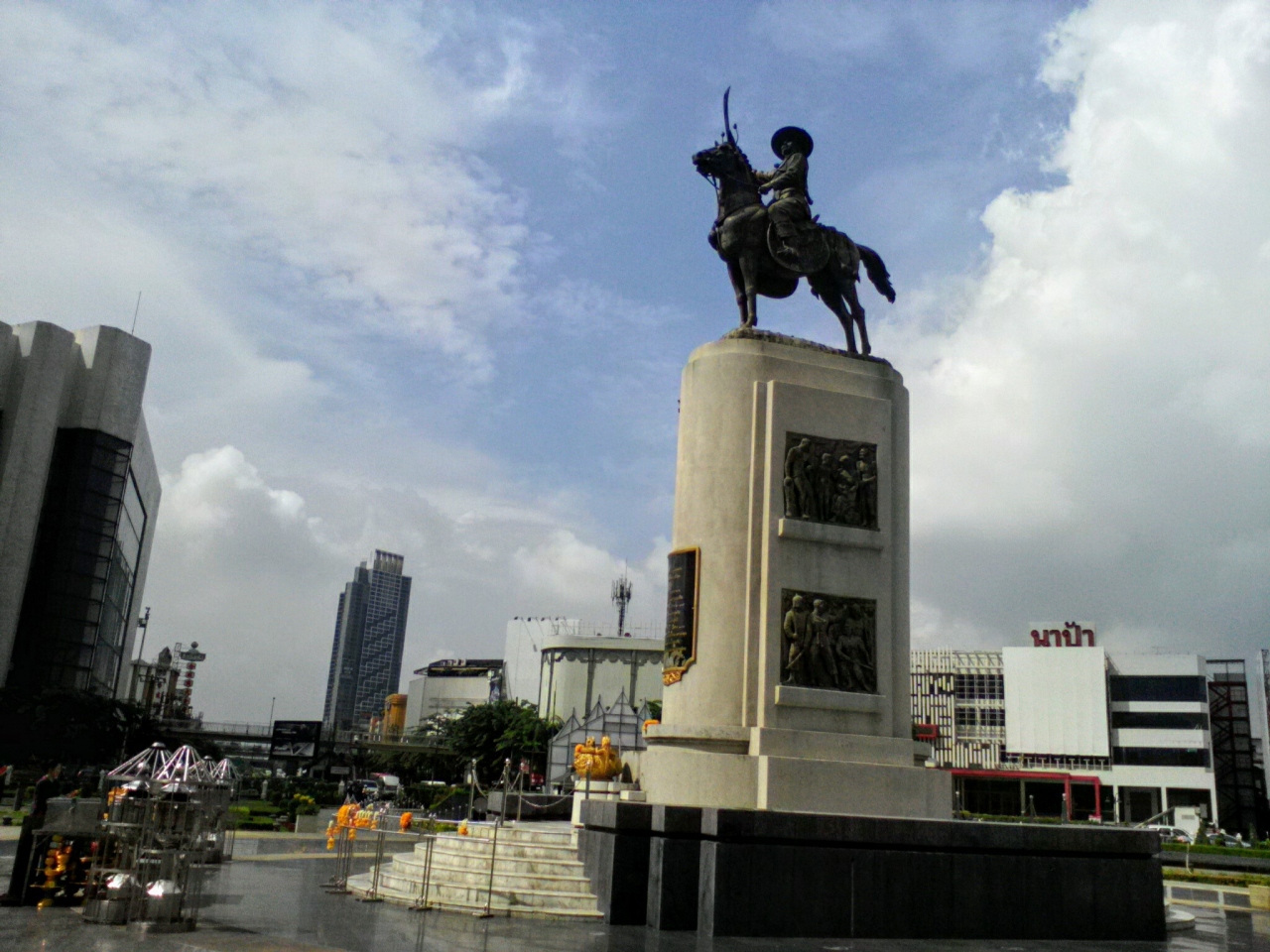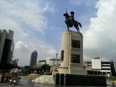 ウォンウェンヤイの大ロータリーの中心に鎮座するタイ建国の祖であるタークシン王像。馬にまたがった姿です。信仰の対象にもなっているようでお参りに来る人がちらほらいます。ロータリー内は公園になっていますが車を避けながら中に入るにはちょっと大変です。周りにある歩道橋の上は公園全体が見渡せるビュースポットにもなっています。