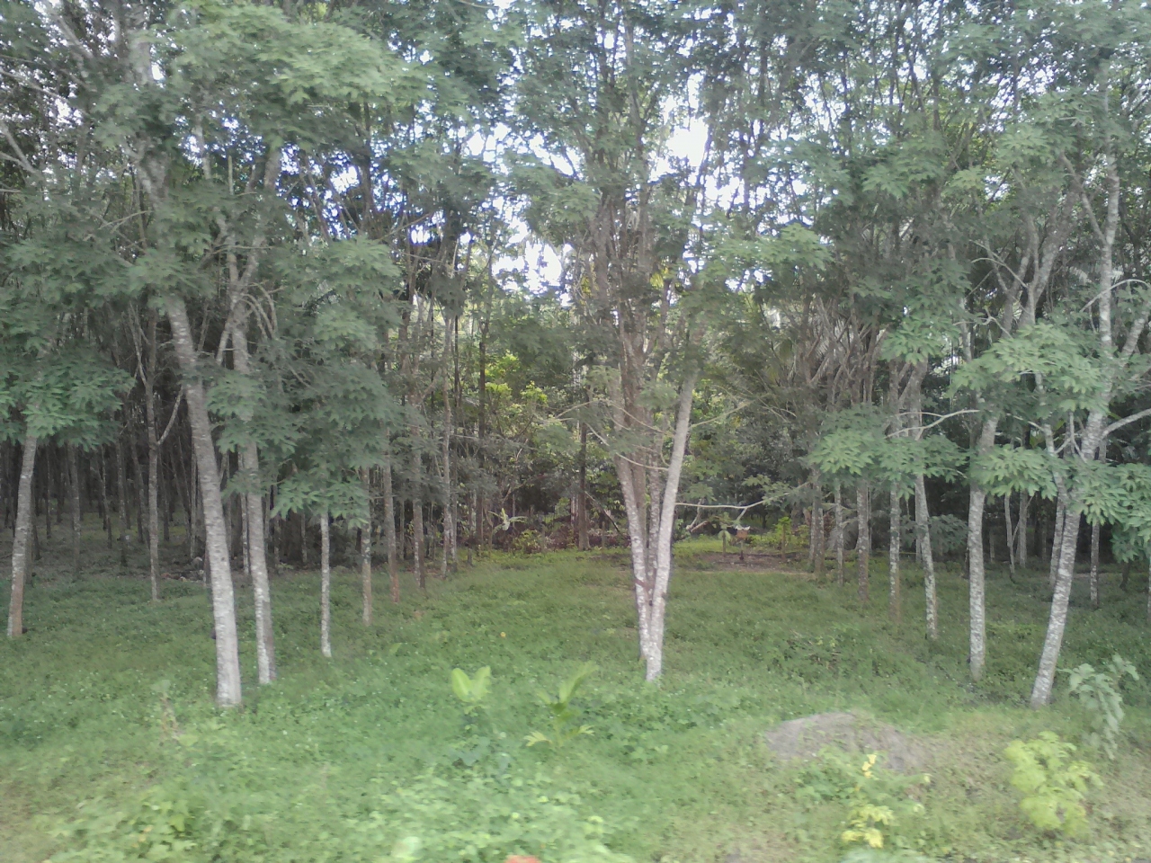コンポンチャム市街からキズナ橋を渡り、しばらく行くとゴムの木のプランテーションが見られます。おそらくその先にあるチュップゴム農園の一部だと思います。ただプランテーションを眺めていても意味はないので興味のある方は農園まで行けば樹液の採取の様子やゴムの精製工場なども見学できるようです。