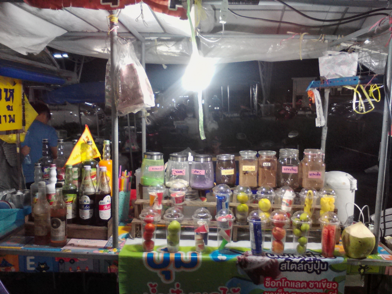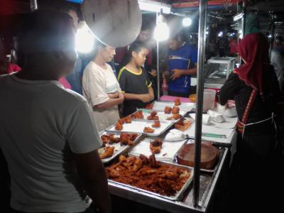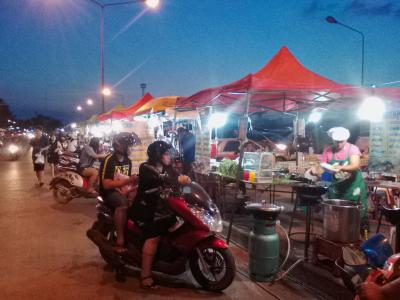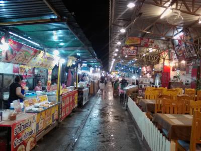 この日は夕方からスコールがありその後も小雨がパラパラ。そのせいなのか時間が早いのかいつもこうなのか、他に理由があるのかわかりませんが何とも寂しいかぎりでした。いくつかの露店は閉まっており客もまばらでまったく活気、賑やかさがない。行ってもテンション下がりまくりです。中心部のナイトマーケットに喰われてしまっているのかもしれません。店としては衣類や雑貨などのお土産類や、屋台や食事、お酒の飲める店などがあります。- 旅行時期