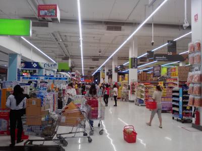 さすがバンコクど真ん中、一等地にある店舗だけあって違います。地方都市のものとは一線を画す外観デザインでこれを見に行くだけでも価値があると思います(ちょっと大げさですが…)。巨大スーパーなので旅行滞在中の必要品やお土産屋などの買い物に重宝すること間違いないです。