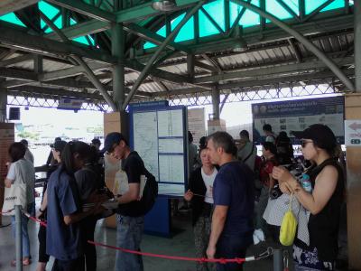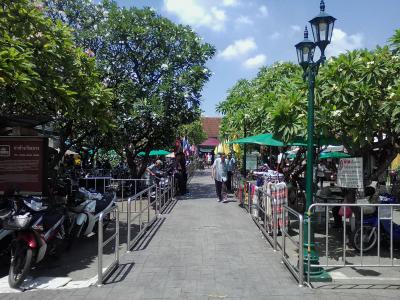 ワットポー最寄りの船着き場。船着き場の中にはお土産屋がずらりと並んでおり、さすが観光地らしいです。以前はチャオプラヤーエクスプレスが停まりましたが現在は飛ばされてしまいました。というか船着き場がワットアルン側に移ったと言ったほうが正しいかもしれません。なのでチャオプラヤーエクスプレスを使ってワットポーに行く場合は対岸のワットアルンで降り、渡し船(4B)を使わなければいけません。