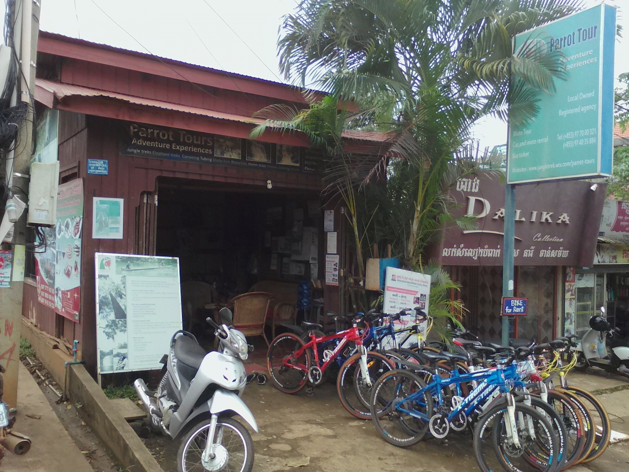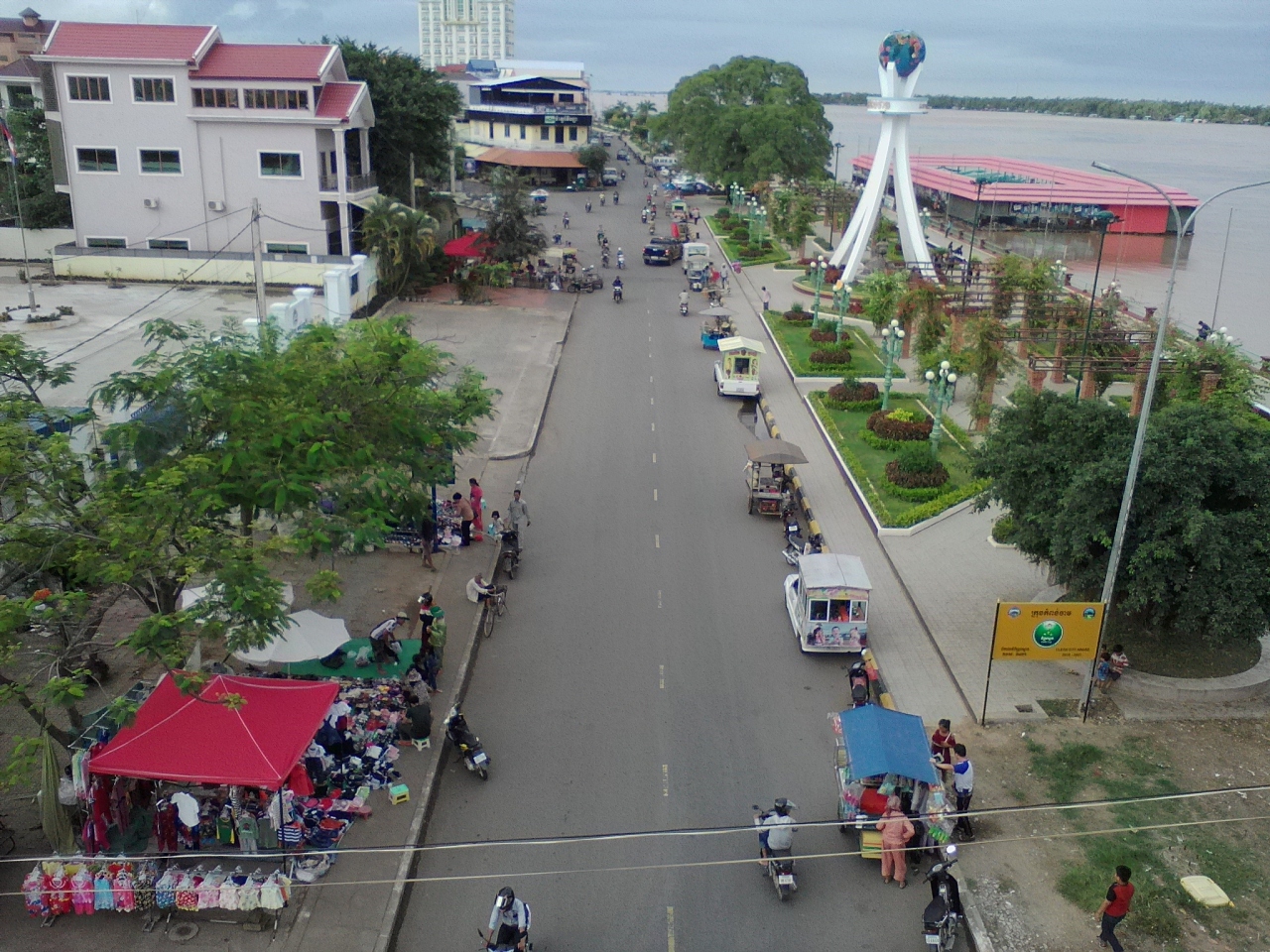 クラチエ市場の北100m、お寺の向かいにワゴン車、乗合タクシー乗り場があります。地元の人が利用するクラチエの実質的なバスステーションです。時刻表や行き先表示はありませんが(あってもクメール語なので理解不能)常に客引きをやっているので行き先を告げればどの車が教えてくれます。ただ外国人だと多少ボラれることもあるので時間に余裕のある方は事前のリサーチをおすすめします。また“人の集まる所には屋台あり”なので安く簡単に食事をしたい方には重宝します。