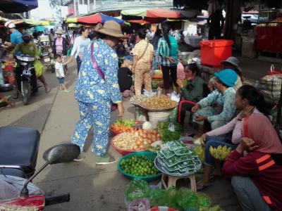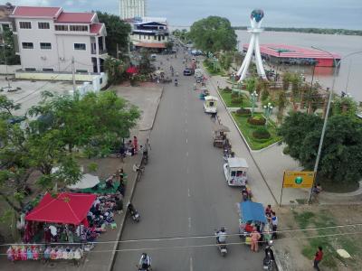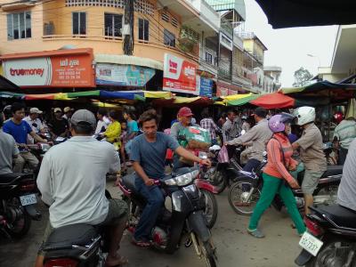 ドルからリエルに両替する際に一番レートがよいのがコンポンチャム市場の正面入口(北側)の通り沿いに10軒ほど並ぶ金行(貴金属店)です。町中にある他の金行、銀行も見ましたがどこよりもレートがいいです。コンポンチャムでの両替は市場北側で決まりです。