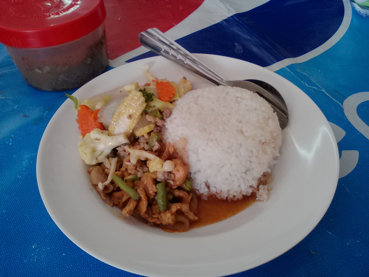 店の外に出してるメニューを見たら意外とリーズナブルだったので入ってみました。店内はとってもカジュアルでまさにローカル食堂のよう。ミックスベジカレー(1万kip)とライス(5000kip)をオーダー。カレーは本場の野菜ゴロゴロ系ではなく見た目は日本風。味もなんとなく日本風?(個人の感想です)でなかなかおいしかったです。ただライスの量が少ない。お腹いっぱいになりませんでした。