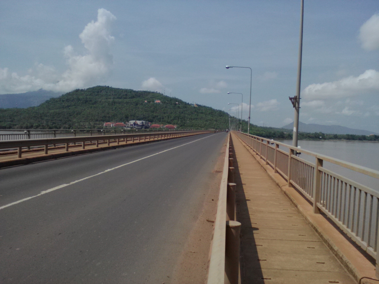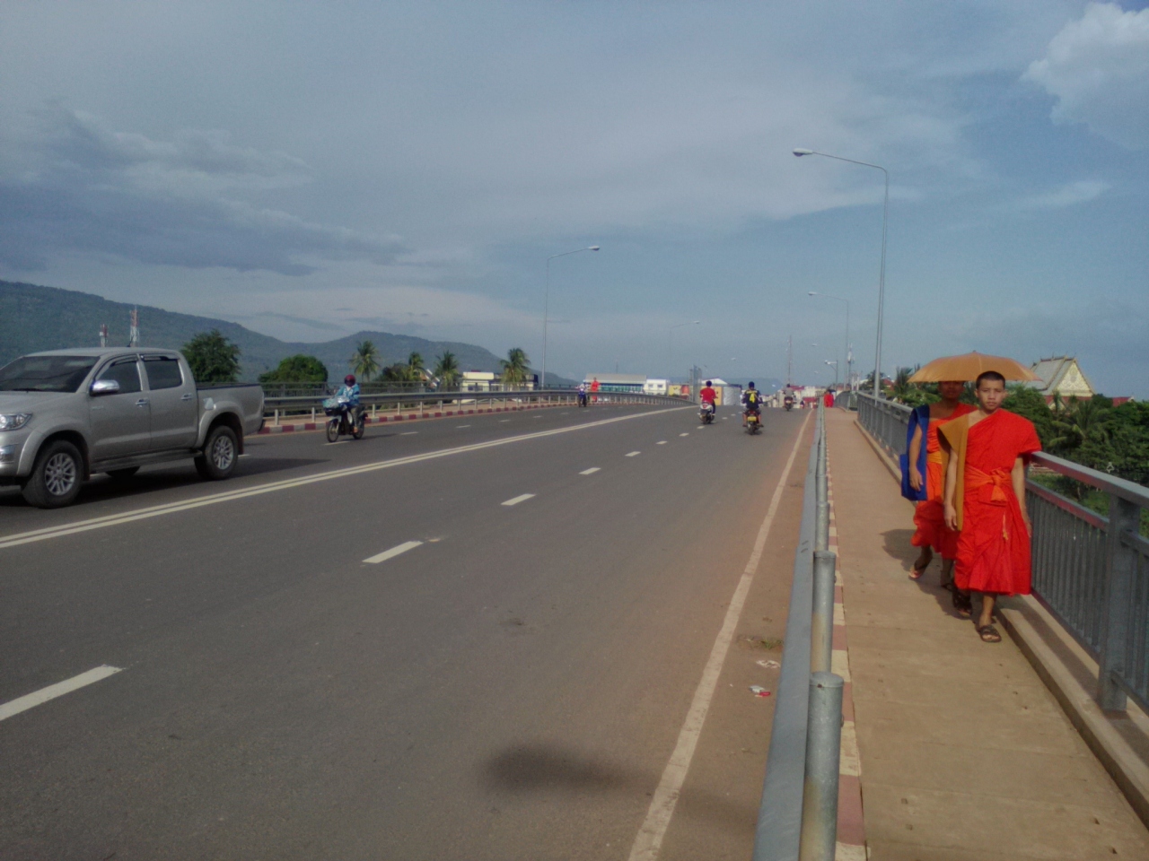 名前の通り日本の援助で造られた橋です。全長1380m。少し離れてパクセー中心部のメコン川沿いの道から眺めればその長さがよくわかります。またラオスとタイの国境線となっているメコン川には4つの友好橋がかけられていますがいずれも国境であるため歩いて渡ることができません。そういう意味ではこのラオス日本大橋はメコン川を歩いて渡れる橋なので貴重な存在とも言えます。ここでしかできない体験なので訪れた際は必ず渡ってみましょう。もちろん私は渡りました。所要たったの18分です。片道ですけどね…。