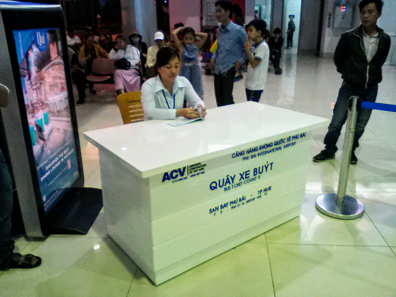 空港からフエ市内へはベトナム航空がエアポートバスを運行しています。到着ロビーに出た所にチケットカウンターがあります。料金は5万ドン。ハノイストリートにあるVietin Bank敷地内にあるベトナム航空のオフィス前が終点です。