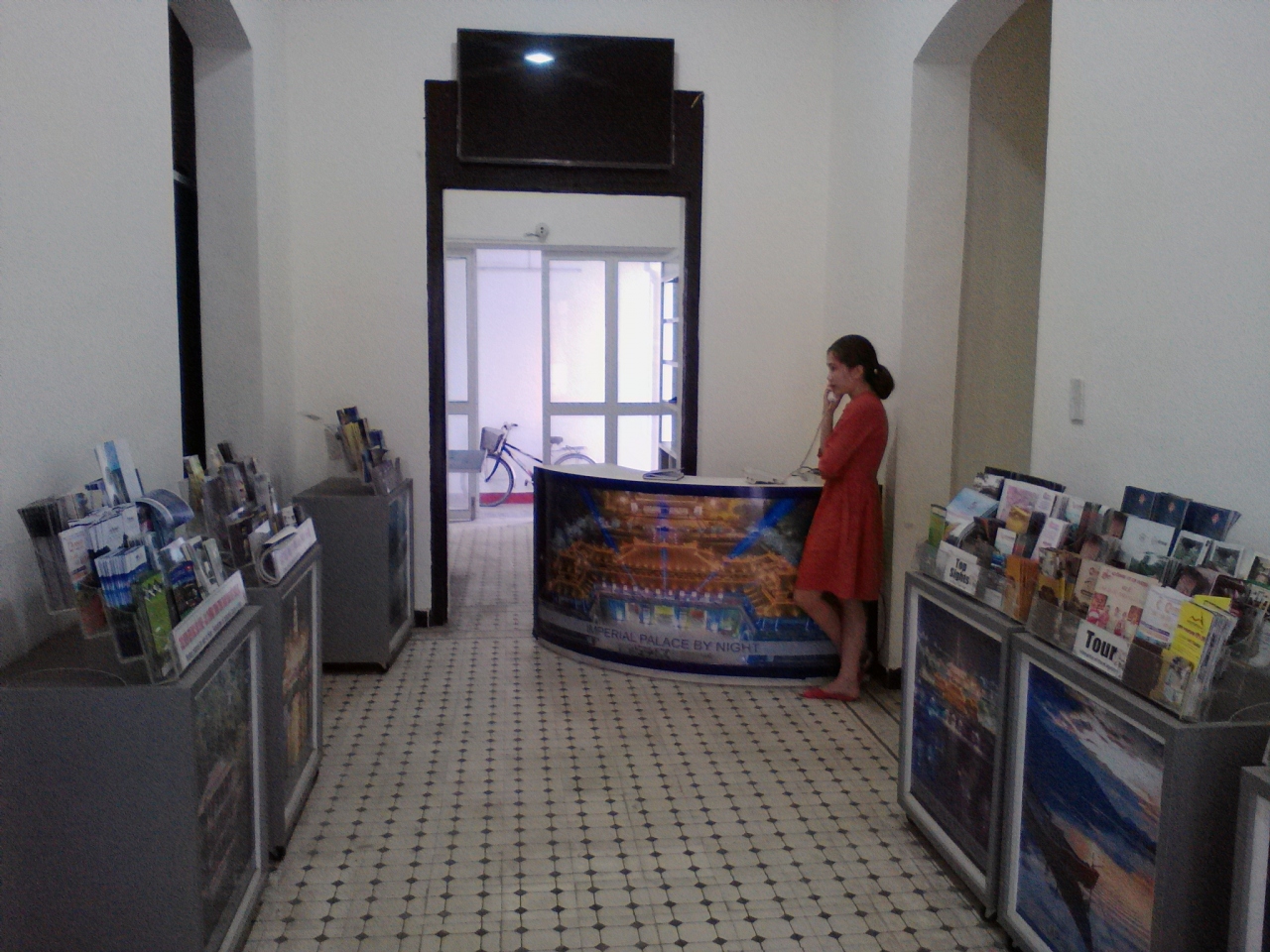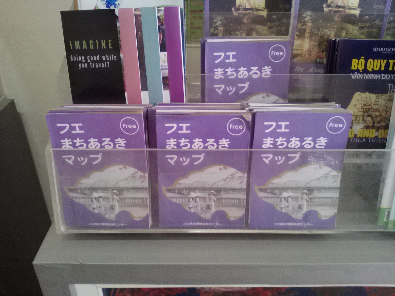 前述の通り移転しましたのでご注意を。以前のものと比べるとかなり質が落ちました。移転したてなのでと言われましたがすでに1年以上経ってるし、今後も多くは望めないかもしれません。しかし無料でもらえる日本語で書かれた「フエまちあるきマップ」と言う地図がかなり詳しく使えます。英語は通じますが月〜金なら日本語の少し話せるスタッフがいると言われとした。トイレも無料で使えます。