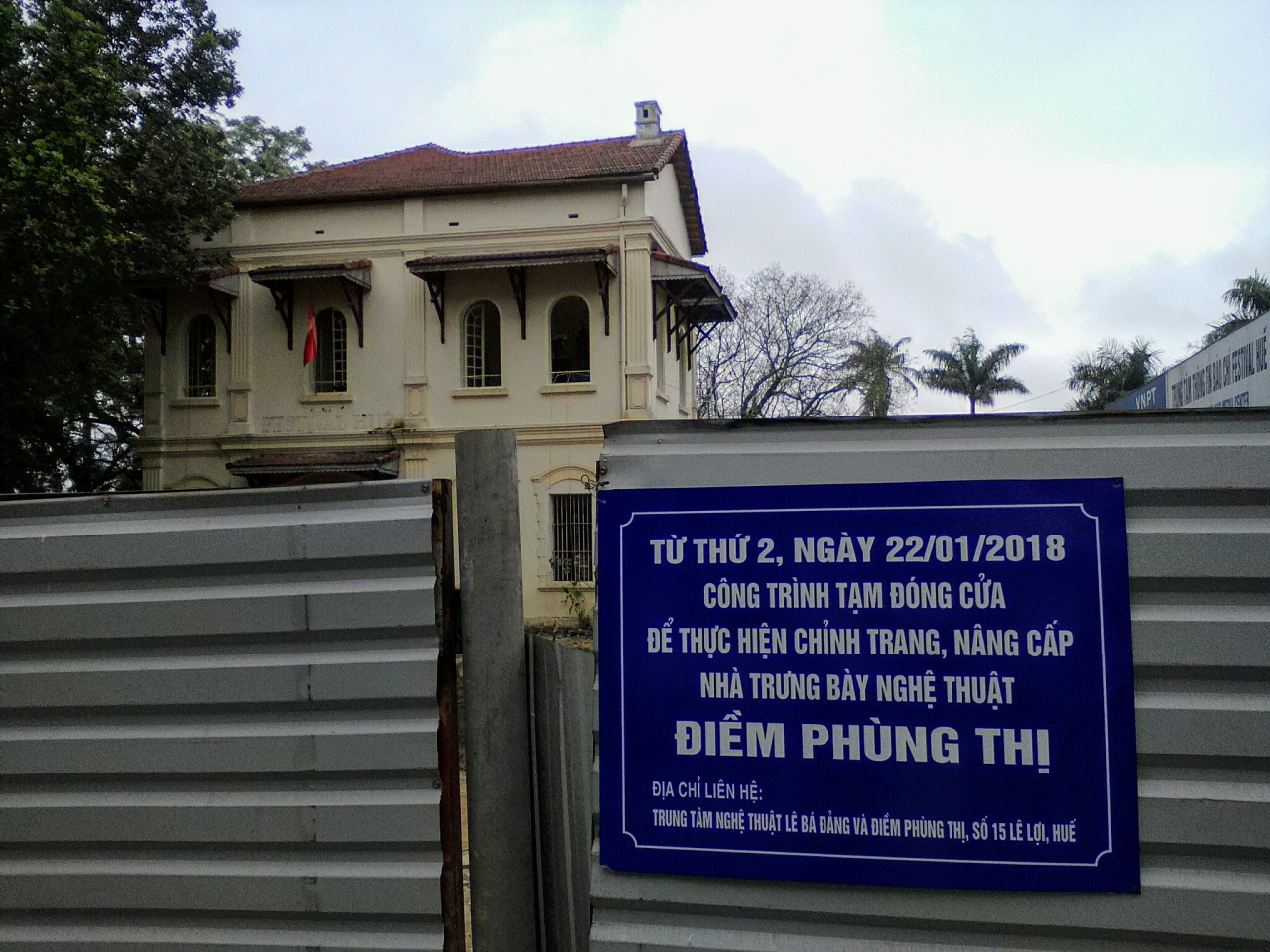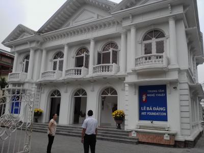 2年ぶりに訪れると「フェスティバル・フエ・センター」に変わっていました。おそらく4〜5月に行われるフエ・フェスティバルを運営する事務所的なところだと思います。事情を聞くとディエム・フン ティ展示会場はレロイ通りに移転したとのこと。場所はチャンティエン橋のたもと、サイゴン・モリンホテルの向かいです。早速行ってみると建物は工事中で2018年4月にオープン予定と言われました。で、それまでの間は同じレロイ通りの100mほど南にある「LE BA DANG ART FOUNDATION」というギャラリーの一部で氏の作品が仮設展示されています。ギャラリーに入るには入場料3万ドンがかかりますのであしからず…。