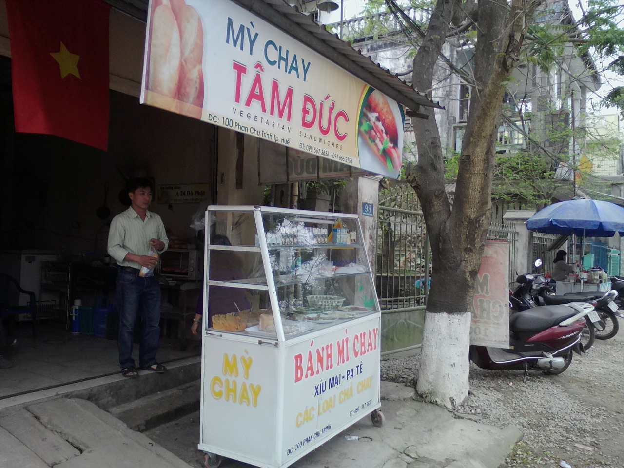 2年ぶりに訪れましたがまだしっかりとありました。店名にもなっているCHAYとは“菜食”の意味。つまりはベジタリアンのサンドイッチ屋です。お値段は据え置きの8000ドンでしたが味がかなり濃くなっていました。チリソースも多めに入っていてベジでありながら、なんかあまり体によくない感じ…。しかし朝9:00頃行きましたが買いに来る客が結構多かったです。店内で食べられますが飲み物がないので前回と同様、近くの飲み物屋台で豆乳(5000ドン)を注文しました。豆乳は甘めなので苦手な方は砂糖を少なくと言った方がいいです。営業時間は6:00〜10:00頃なのでご注意を…。