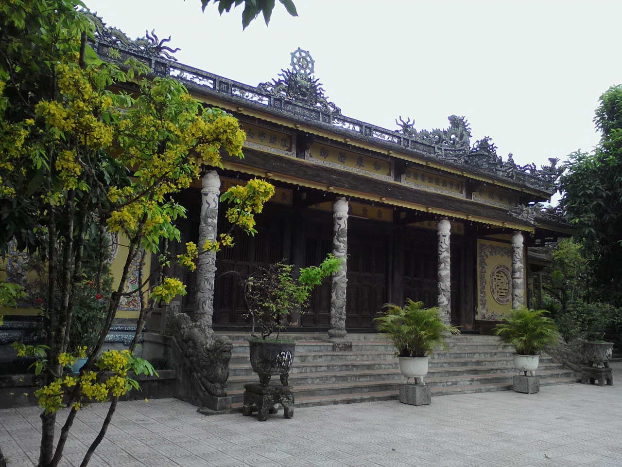 グエン朝初代皇帝であるザーロン(嘉隆)帝のお墓。フエ市内の南約18kmのフォン川沿いにあります。旅行会社などによるシティーツアーには含まれていないので訪れるにはタクシー、バイタク、自転車などで行かなければなりません。たまたま私は日本の某大学とフエ遺跡保存センターなどが企画し試験的に行われたエコスタディーガイドツアーで訪れました。やはり、帝陵自体はシティーツアーに含まれるミンマン、カイディン、トゥドゥックのものに比べるとかなり見劣りしますが陵内に設けられた池や水田、周辺の山々を景観の一部に取り組むようにデザインされただけあり、どことなく落ち着ける眺めが広がっています。現在は見学無料。これから整備され“観光地”化が進むと思われるので興味のある方は今のうちに一度訪れておいた方がいいかもしれません。