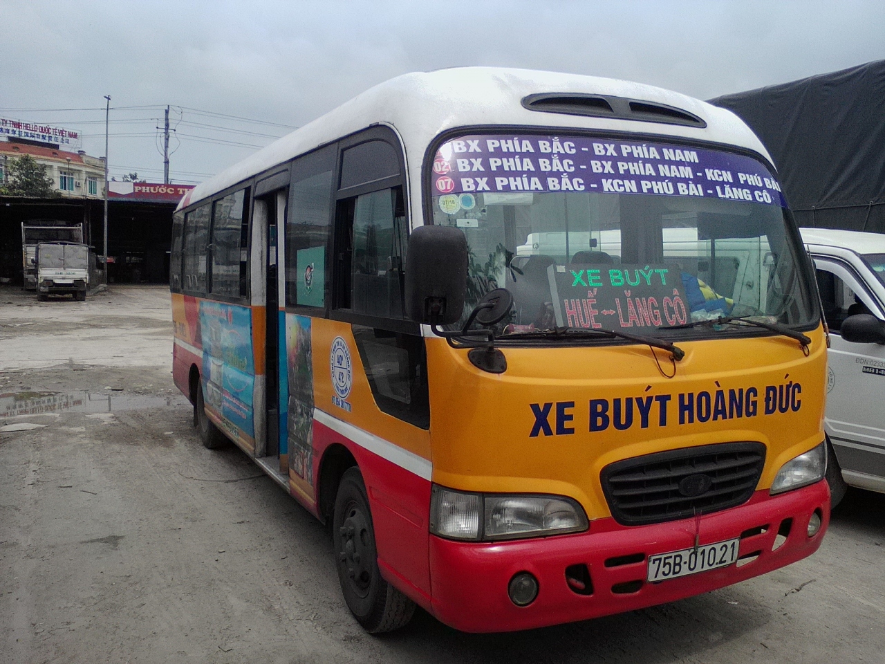 フエ市内には路線バスが走っています。いくつか路線があり番号が付けられています。市内各所にある停留所に案内表示されているところもありますが色あせてしまってかなり見にくい、あまり役に立ちません。なので今回、旅行者が使えそうな路線、フィア・バック(北)バスターミナルからアンクー(南)バスターミナルまで乗ってみました。本来なら①、②、④のバスがそれぞれ使えそうですが北バスターミナル出発のバスには①②⑦が併記されていました。おそらく路線の効率化による統合だと思います。ちなみに①は北バスT↔南バスT、②は北バスT↔フーバイ、⑦は北バスT↔ランコー。