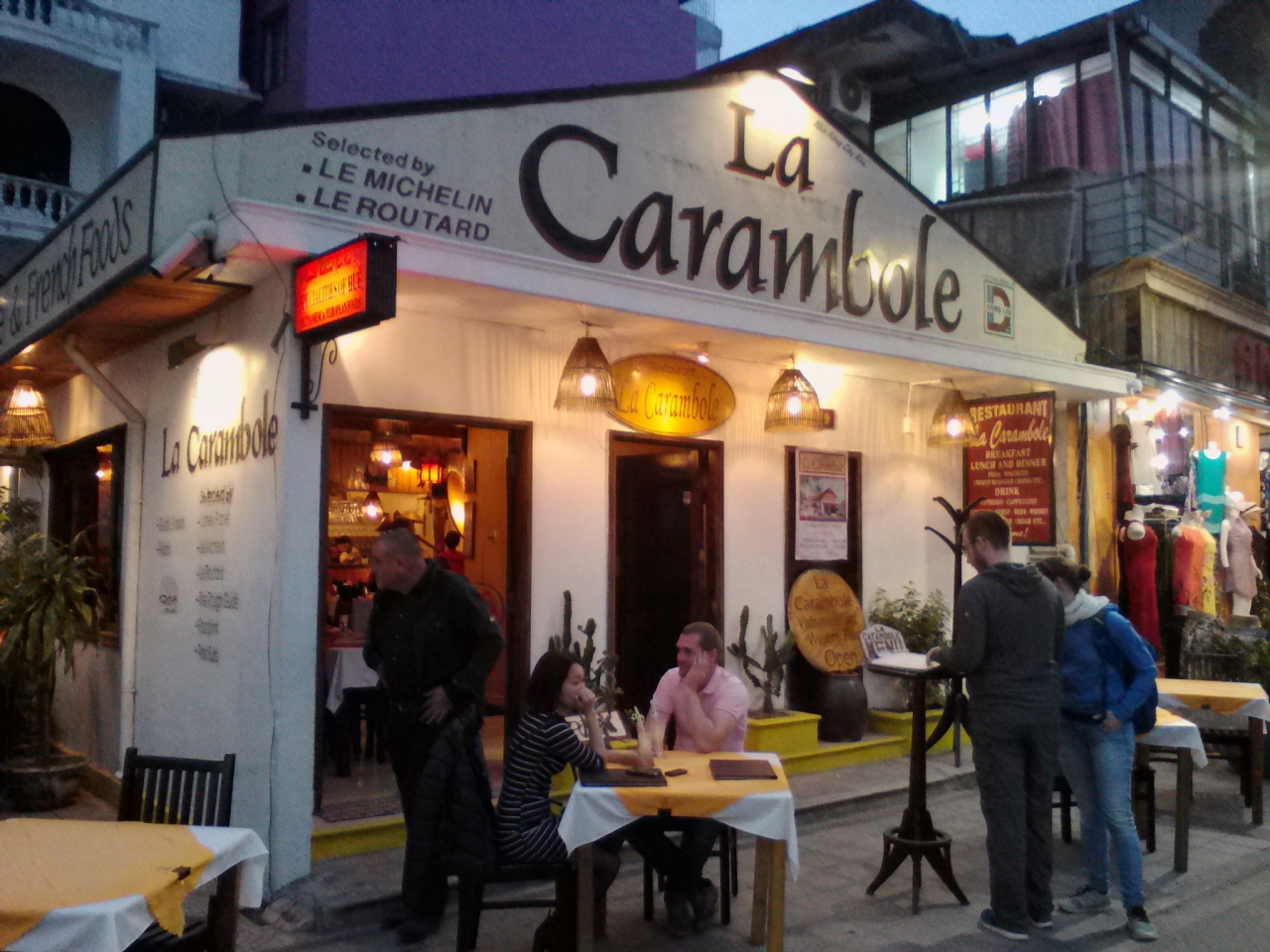 カジュアルなフレンチレストラン。といってもビザやパスタなどのイタリア料理やベトナム料理などもあります。もちろんドレスコードなどはなく短パン、サンダルでもOKです。日曜の夕方に訪れた時は空いていましたが時間が経つと店内は西洋人だらけでほぼ満席、我々は大人数だったので予約しておいたら店の横の駐車場にテーブルがセッティングされていました。天気さえよければ屋外席の方が気持ちはいいです。ベトナムの物価からしたら値段は高めですが日本で食べることを思えば格安の料金です。たまには“奮発”してみるのもいいかも。贅沢気分が味わえます。